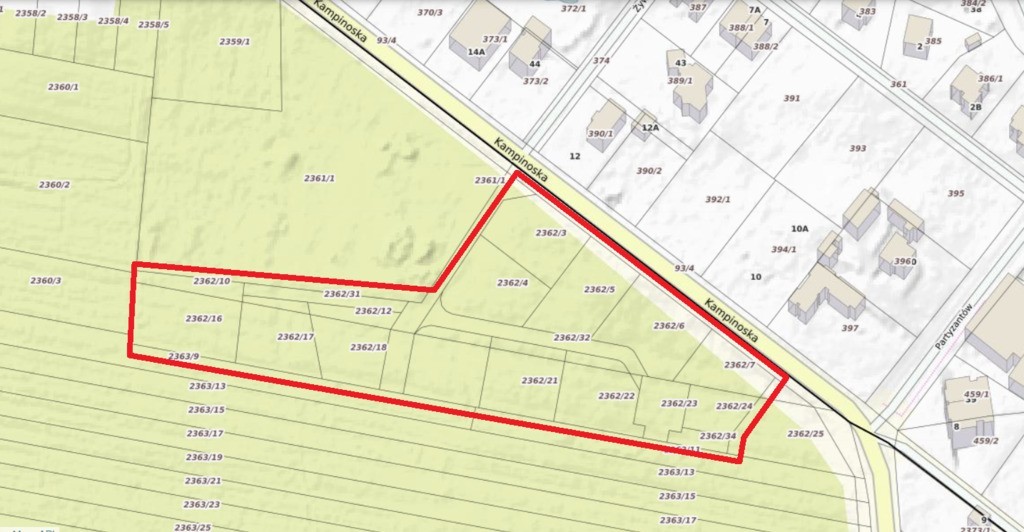 We offer for sale a beautiful 11,100 m² forest building plot located on Kampinoska Street (corner of Żubrowa Street) in Łomianki. The plot has an approved local zoning plan (MPZP), which allows for single-family development (detached, semi-detached, and townhouses).