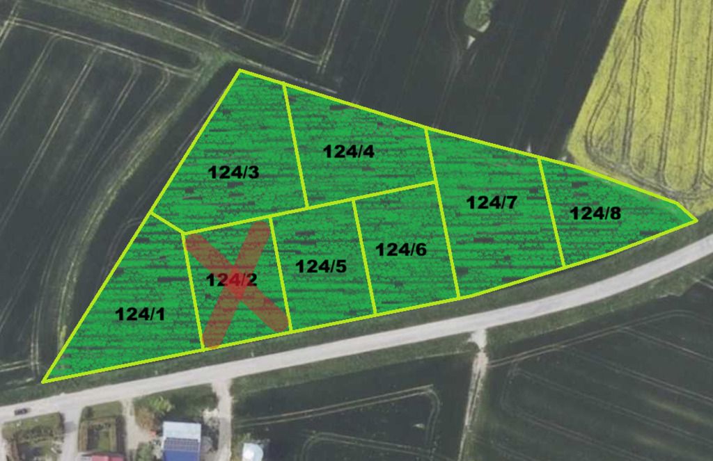 Dostępne działki oznaczone symbolem MN 2: - 124/1 – 1328 m²