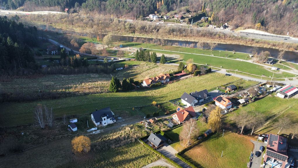 LOCATION The plot is located in Myślenice's Zarabie district, one of the most popular and beloved parts of the city. It's an area associated with recreation, peace, and space, where residents escape the city center but still have everything at their fingertips. Nearby are walking areas, cycling routes, a grassy beach, paths along the Raba River, and all the infrastructure that makes Zarabie a place to live, not just for a weekend getaway.