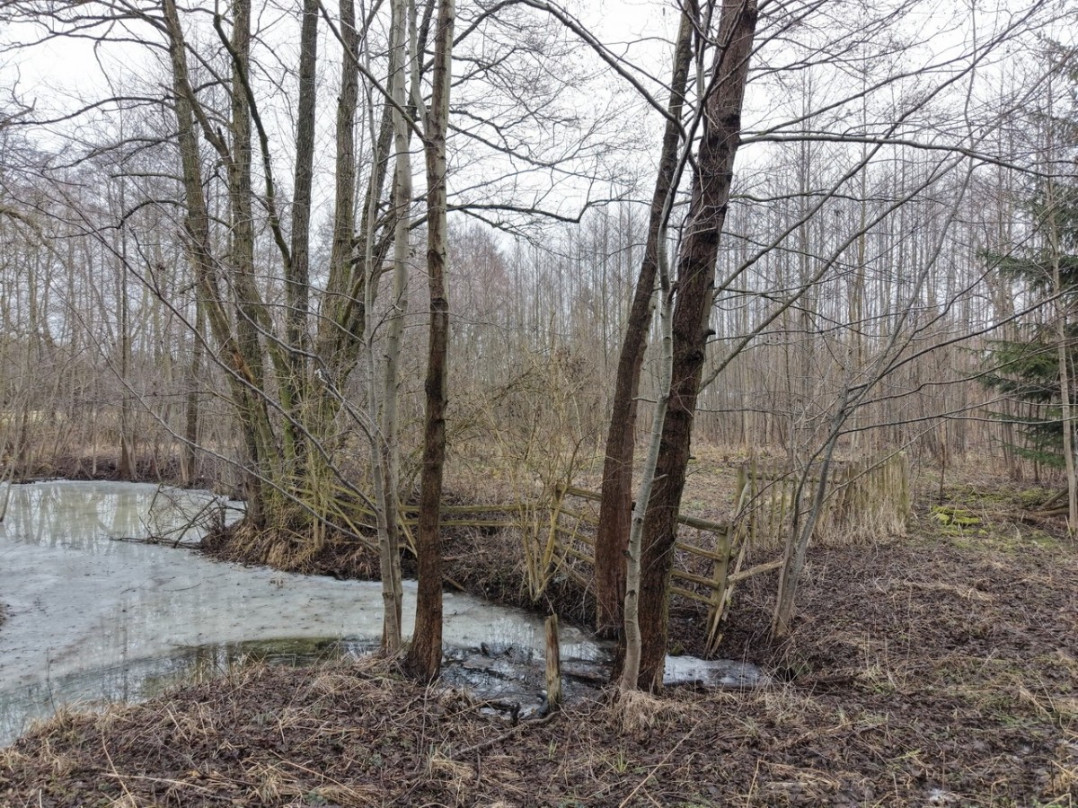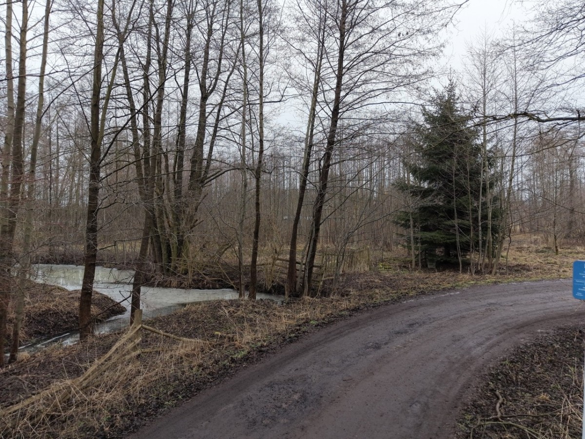 ciek wodny przebiegający wzdłuż bocznej granicy działki, który podkreśla naturalny charakter miejsca i zwiększa walory krajobrazowe. Teren jest harmonijnie wpisany w otaczającą przyrodę — to idealna propozycja dla osób szukających przestrzeni, spokoju i kontaktu z naturą.