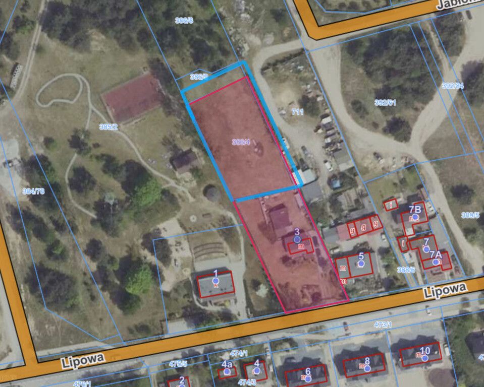 - Numery działek: 386/4 386/3.