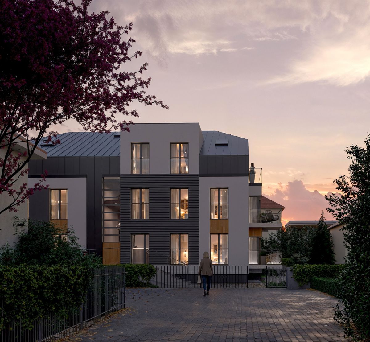 - Elegancka, nowoczesna bryła budynku.