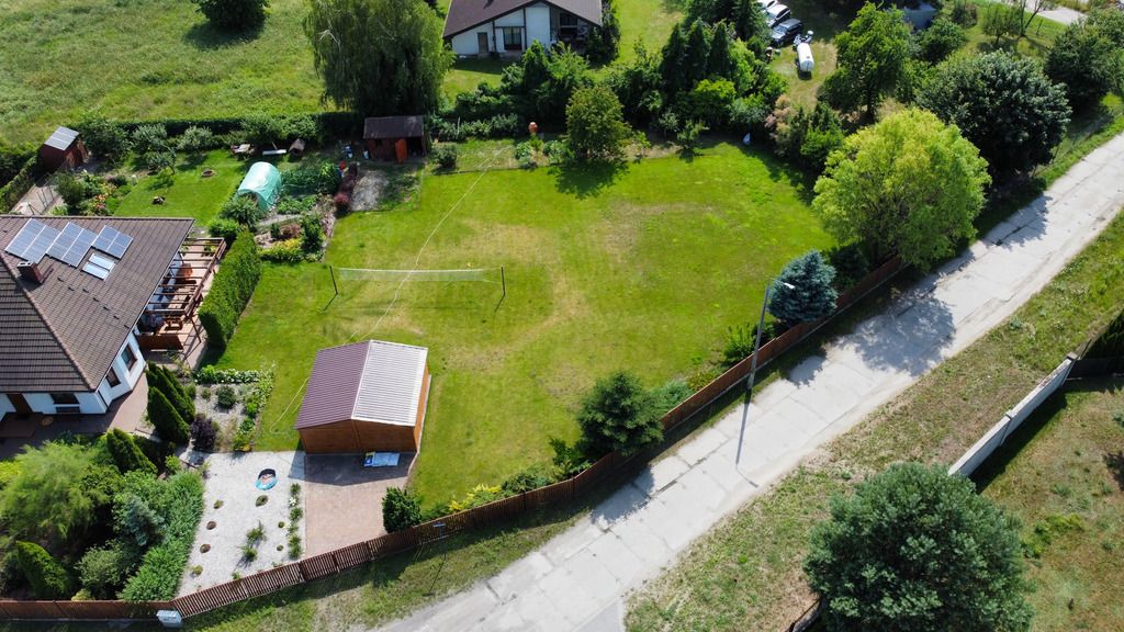 - Płaski, ogrodzony teren o nieregularnym kształcie, dający wiele możliwości aranżacyjnych – można postawić dom, a dodatkowo zachować strefę rekreacyjną (np. istniejące boisko do siatkówki).