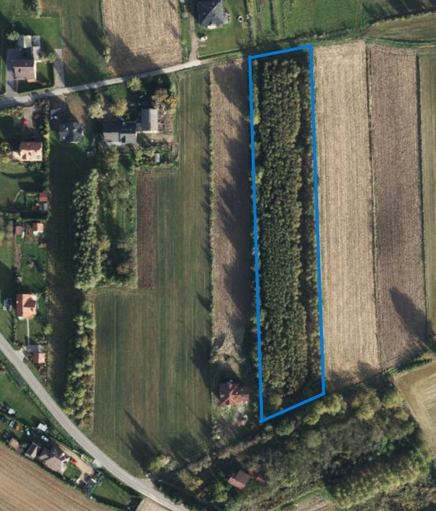 Prostokątna działka o wymiarach ok. 37m przy drodze oraz ok. 225m w zadłuż. Nieruchomość jest pokryta samosiejką. Właściciel deklaruje, że w przypadku sprzedaży całego kompleksu działek przeprowadzi pełne wykarczowanie terenu na własny koszt, przygotowując grunt do dalszego zagospodarowania.