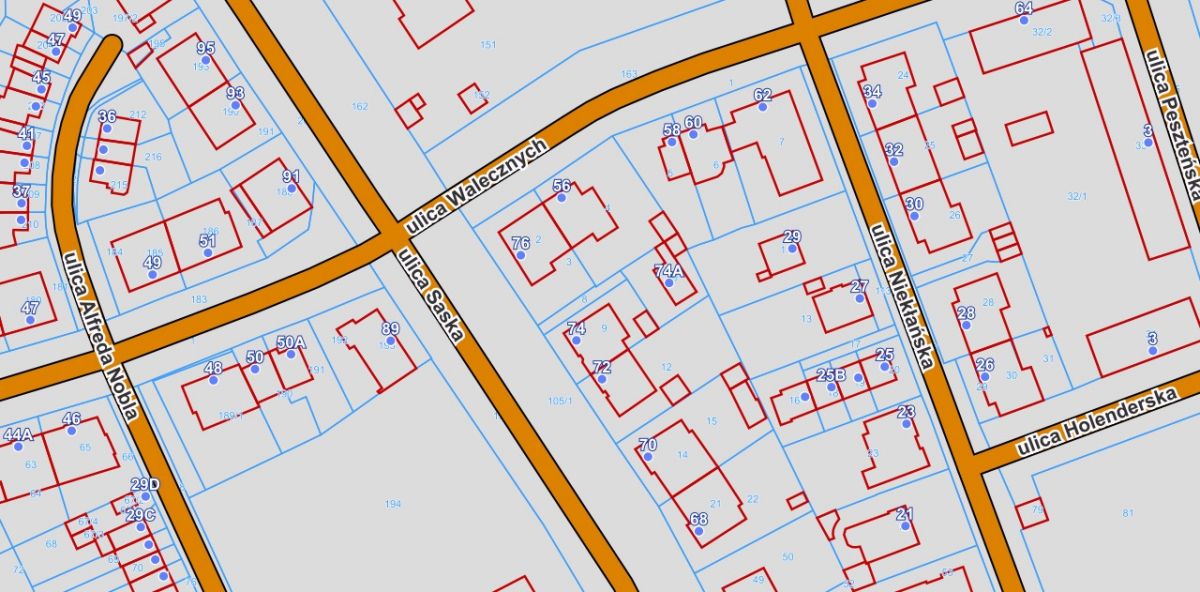 Najkrótsza odległość do ul. Saskiej ok. 44 m.