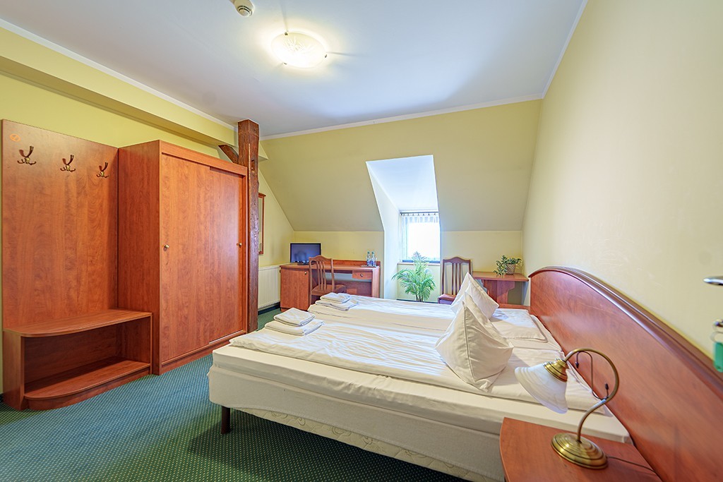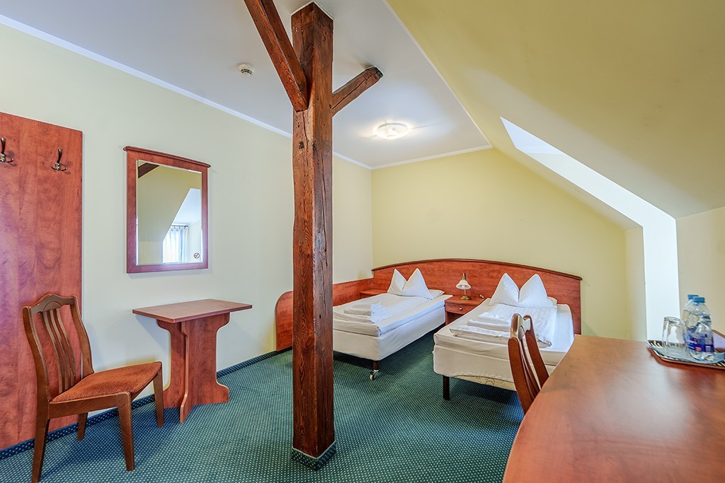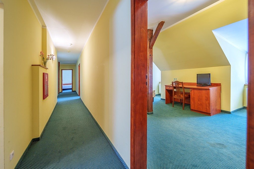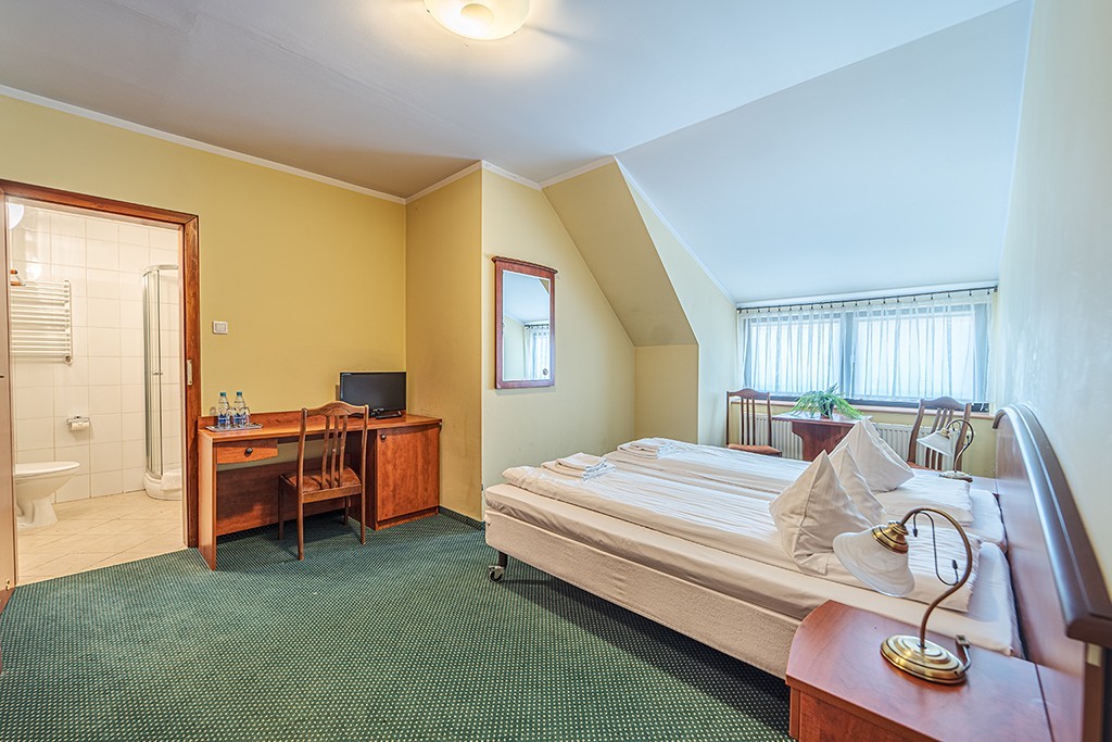 - 11 pokoi jedno lub dwu osobowych z łazienkami. Podłoga, zarówno w korytarzu jak i w pokojach, jest wyłożona wykładziną. Natomiast łazienki posiadają kabiny prysznicowe i są wyłożone płytkami ceramicznymi. Rozłożenie pokoi daje gościom hotelowym intymność i spokój.