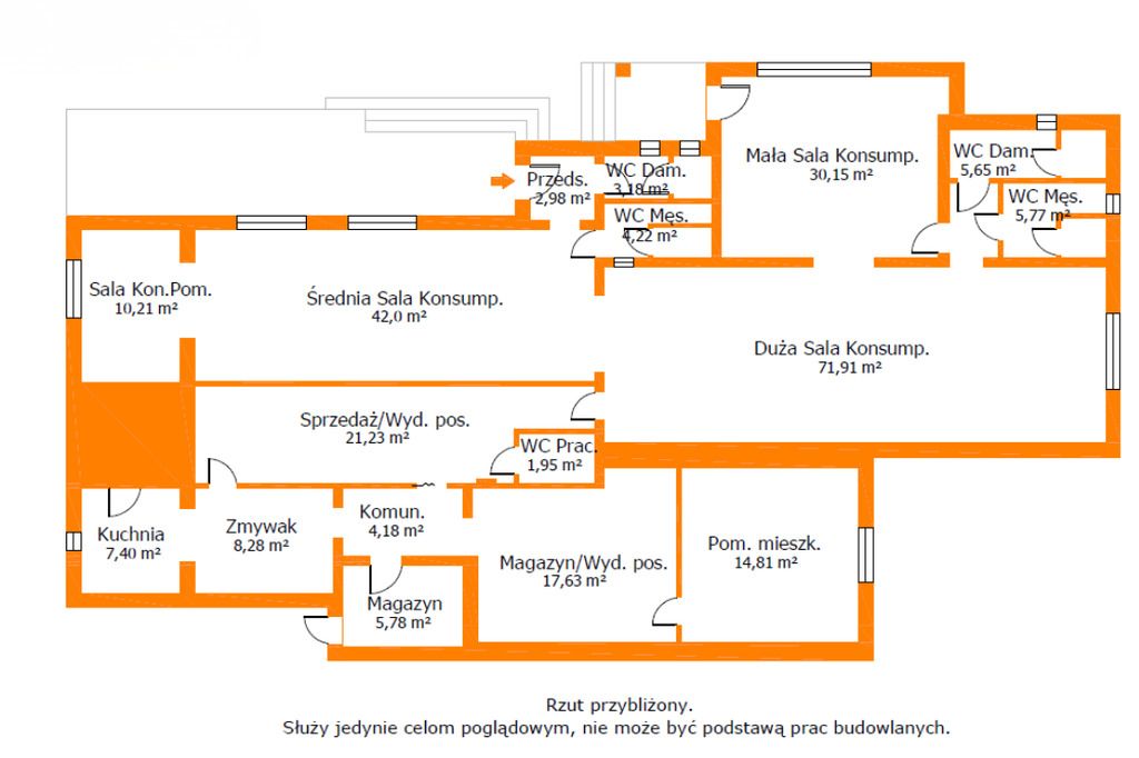 Obiekt przeszedł generalny remont – zarówno wewnątrz, jak i na zewnątrz. Aktualnie działa w nim restauracja, w której organizowane są imprezy okolicznościowe. Lokal jest w pełni gotowy do prowadzenia działalności gastronomicznej lub innej funkcji usługowej bez konieczności ponoszenia dodatkowych nakładów.