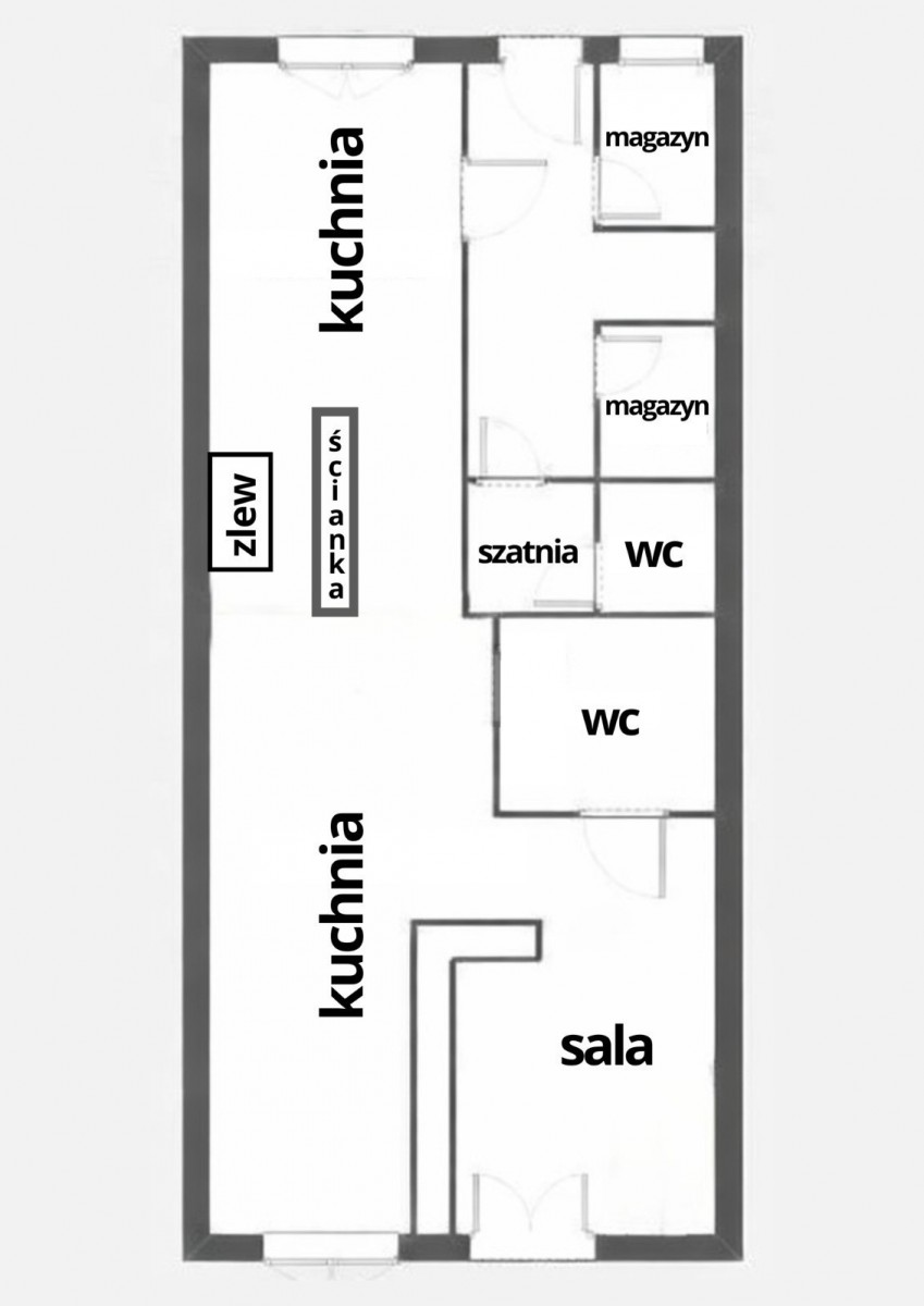 Obecnie lokal działa jako jeden spójny punkt usługowy, jednak wcześniej funkcjonował jako dwa niezależne lokale, co daje możliwość ponownego podziału powierzchni i elastycznego dopasowania jej do potrzeb inwestora lub najemcy.