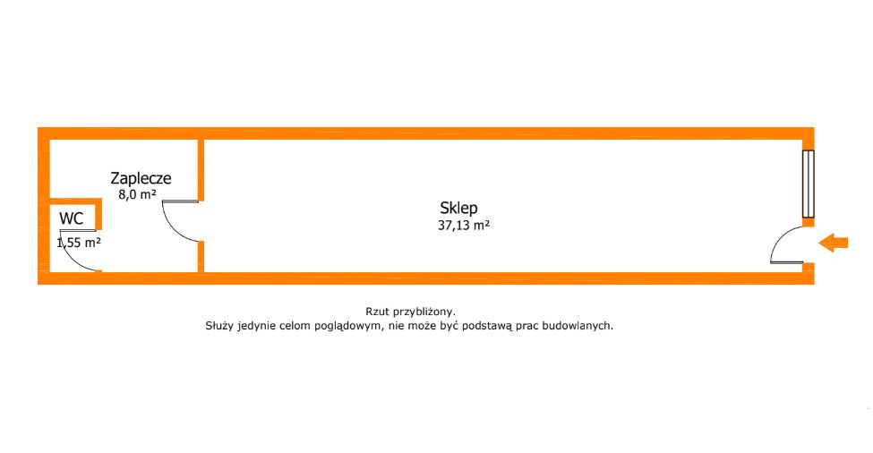 - Sala sprzedaży/sklep: 37,13 m² (duża, jasna przestrzeń)
