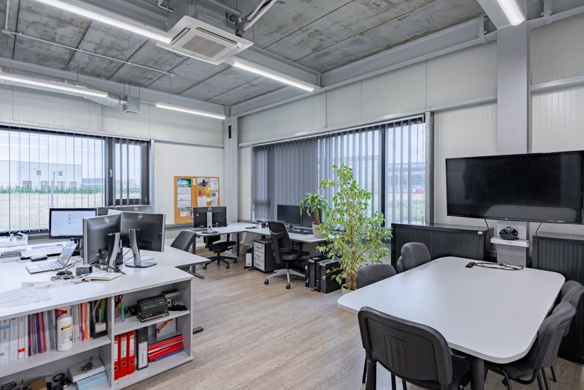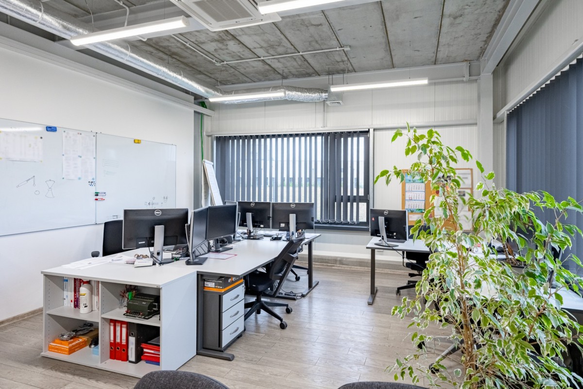 Hala dzieli się na część produkcyjną z dwoma bramami wjazdowymi oraz część socjalno-biurową (w tym: pomieszczenia biurowe, recepcja, stołówka, szatnia dla pracowników wraz z łazienką, sala konferencyjna, serwerowania, toalety).