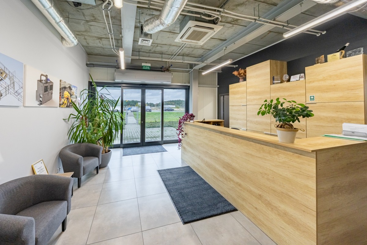 Teren utwardzony z przygotowanymi podjazdami oraz parkingiem dla pracowników (10 miejsc parkingowych).