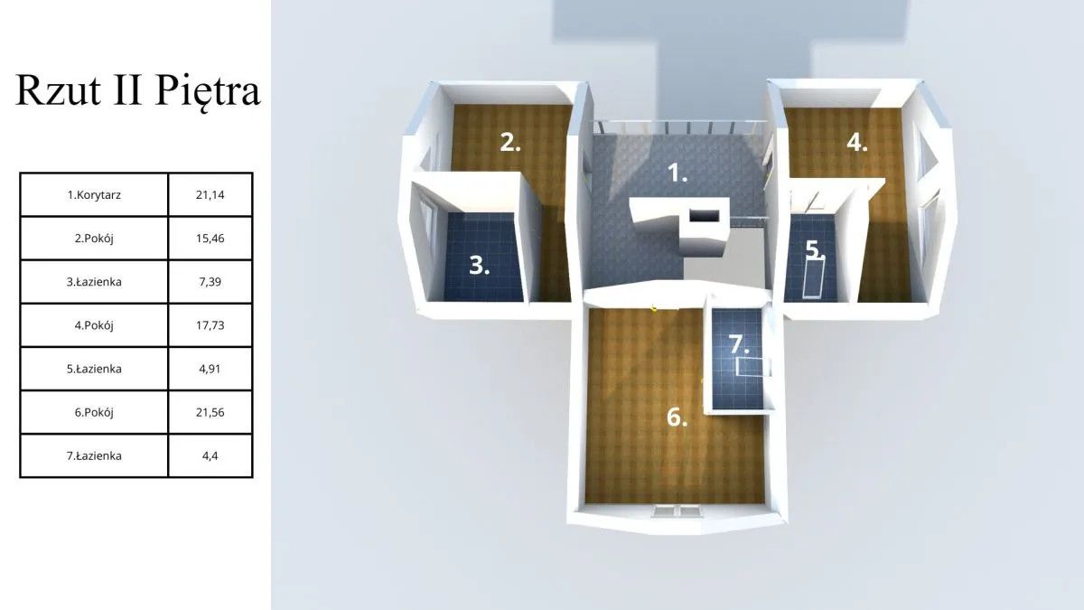 II piętro / poddasze: 3 pokoje z łazienkami