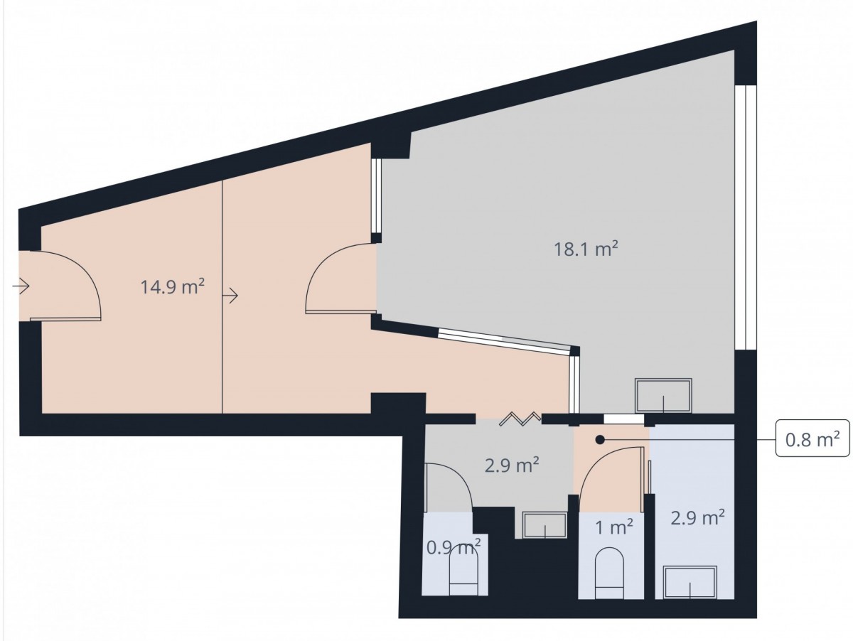 Posiada dwie toalety i inne pomieszczenia gospodarcze.