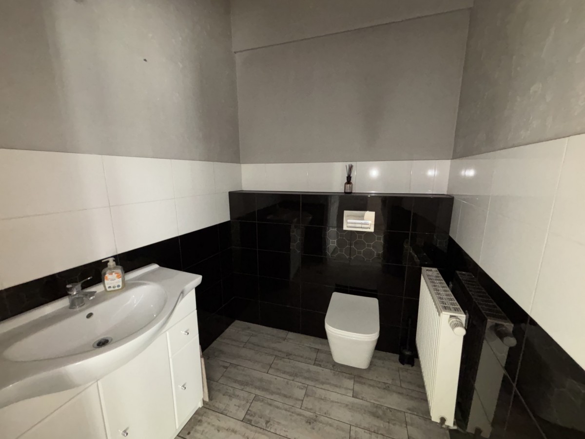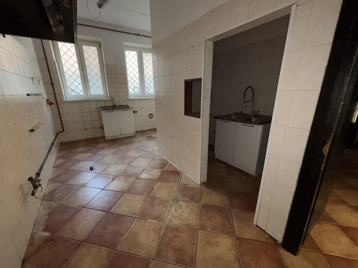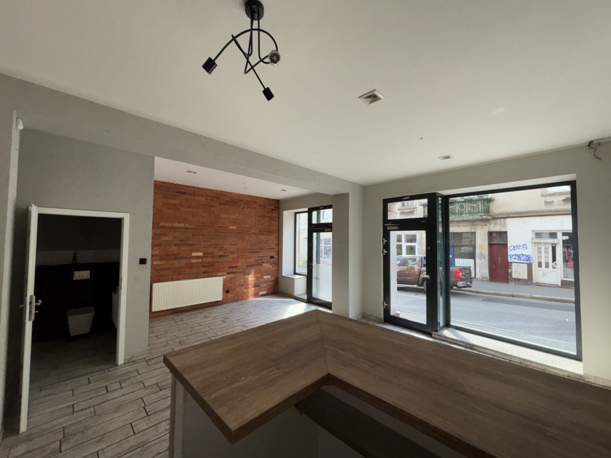 Wnętrze składa się z przestronnej sali głównej, toalety, zaplecza i drugiej toalety, oraz pomieszczeń pomocniczych. Układ lokalu jest funkcjonalny i otwarty, co umożliwia łatwą aranżację według potrzeb przyszłego najemcy. Widoczne na zdjęciach elementy (lada, zaplecze kuchenne, ściana z cegły) pozwalają na wykorzystanie lokalu zarówno w obecnym układzie, jak i po adaptacji.