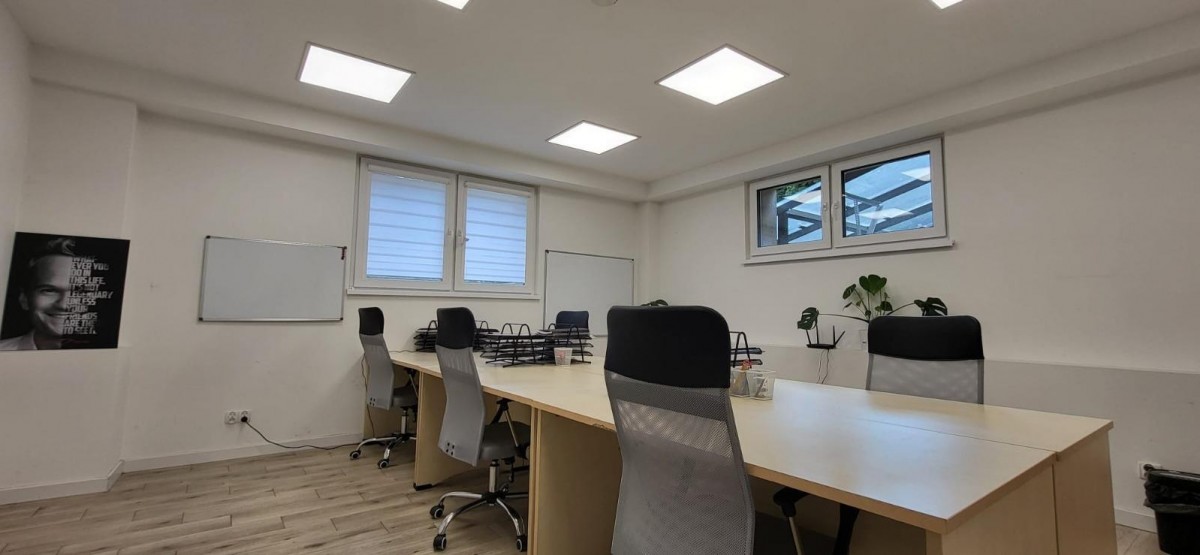 The property is located on the basement level, but thanks to extensive glass, the interior remains bright and comfortable for everyday use. The space is fully prepared for business operations without the need for additional costs. Tenants have access to complete workstations: desks, office chairs, shelving, and filing cabinets.