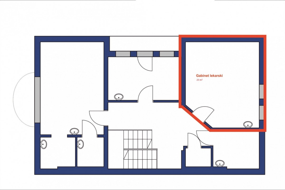 Miesięczny koszt najmu gabinetu o powierzchni 23 m2 - 2300 zł netto.
