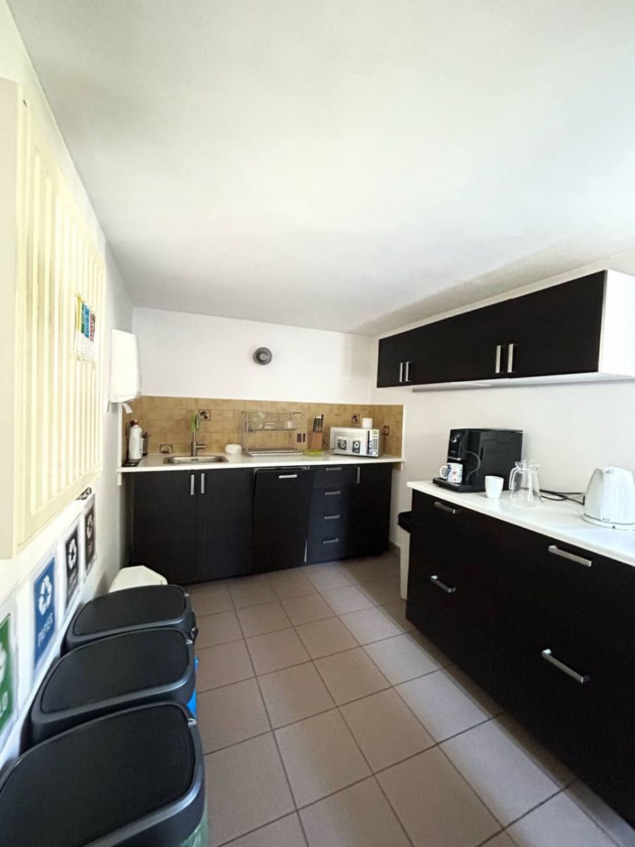 Przestrzeń mieści się w niewielkim, spokojnym obiekcie otoczonym zielenią, co gwarantuje komfortowe warunki pracy i możliwość relaksu w ogrodzie