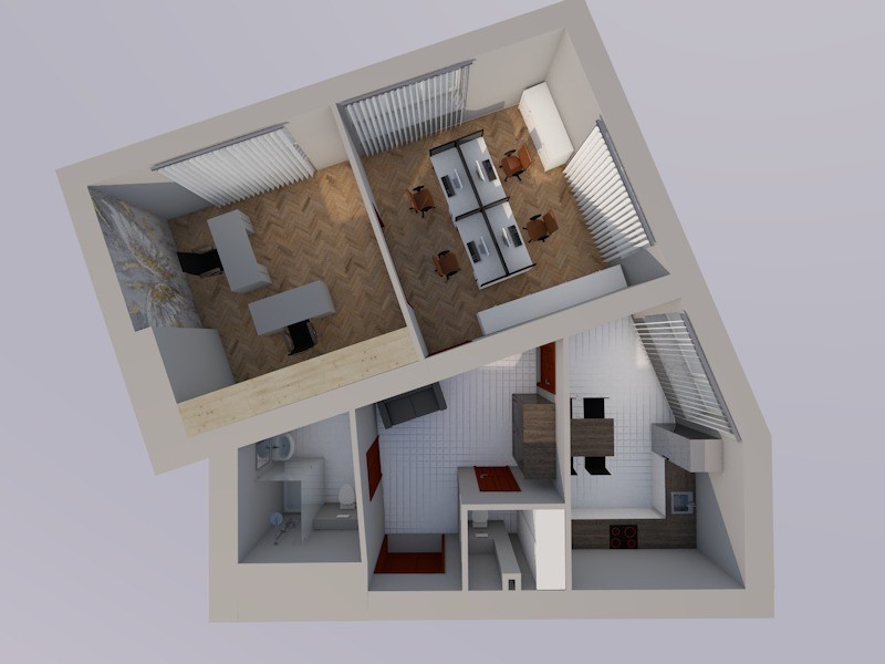 - dwa duże pokoje