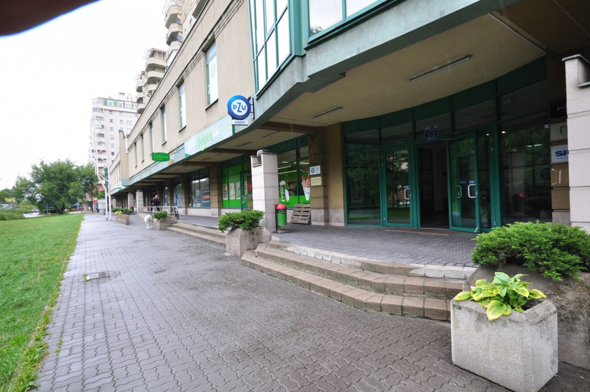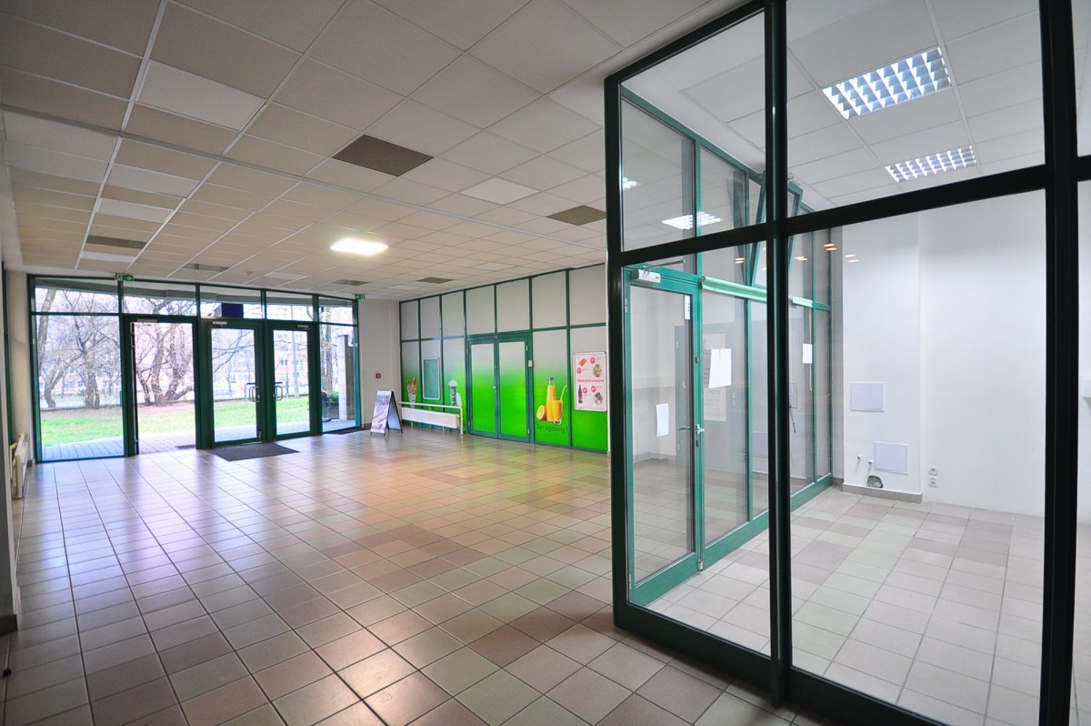 Lokal znajduje się jednym z wejść do budynku, w którym znajdują się różne placówki co zapewnia intensywny ruch pieszych w tej okolicy.