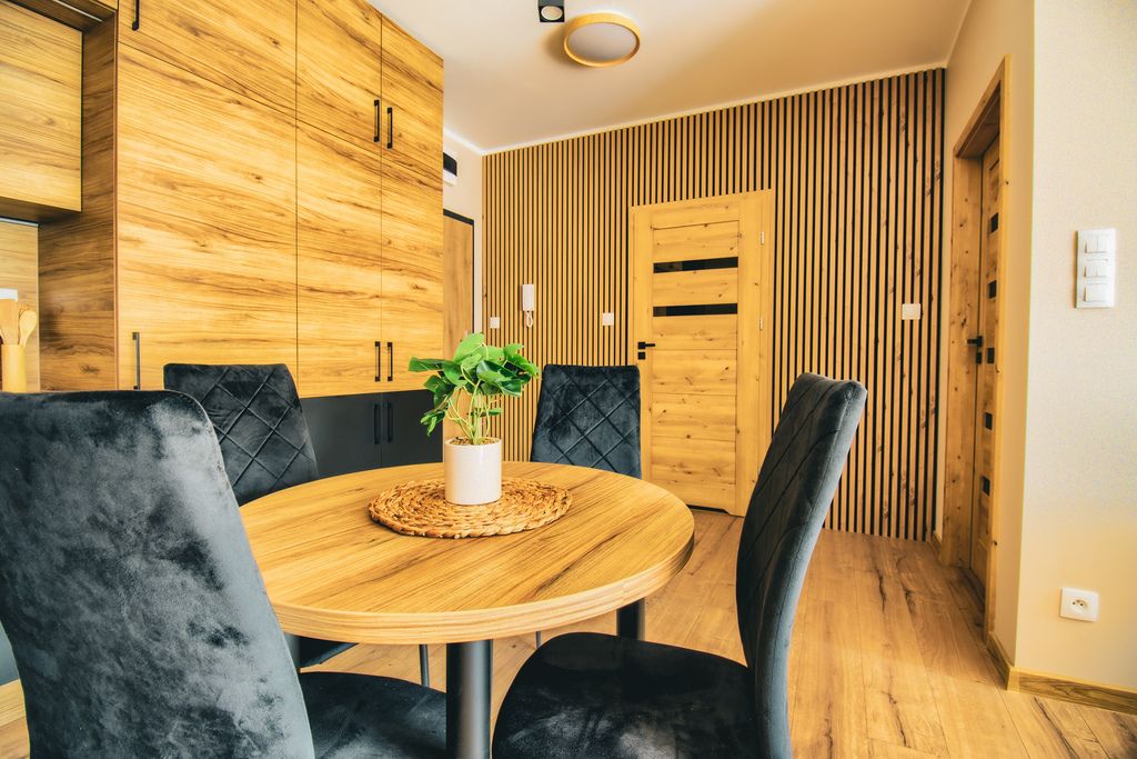 Wnętrze: - Otwarta kuchnia z salonem – jasna i przestronna przestrzeń dzienna, idealna do odpoczynku i spotkań z bliskimi.