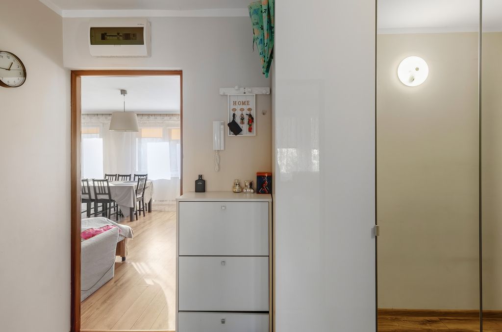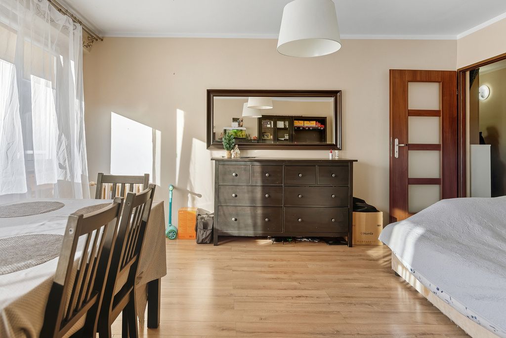 Mieszkanie o funkcjonalnym układzie, obecnie składające się z dwóch pokoi, z możliwością przywrócenia pierwotnego podziału na trzy niezależne pomieszczenia. Rozkład umożliwia elastyczną aranżację wnętrza w zależności od potrzeb przyszłego właściciela.