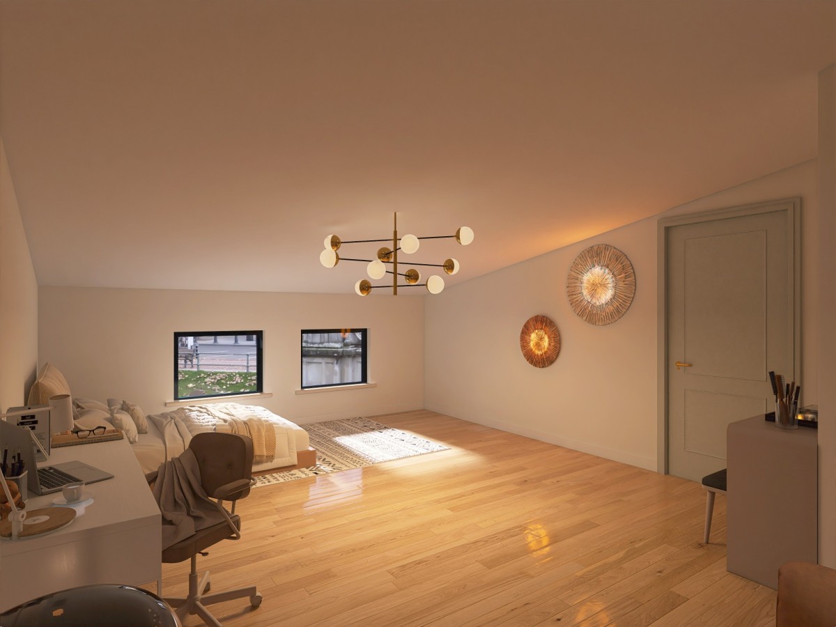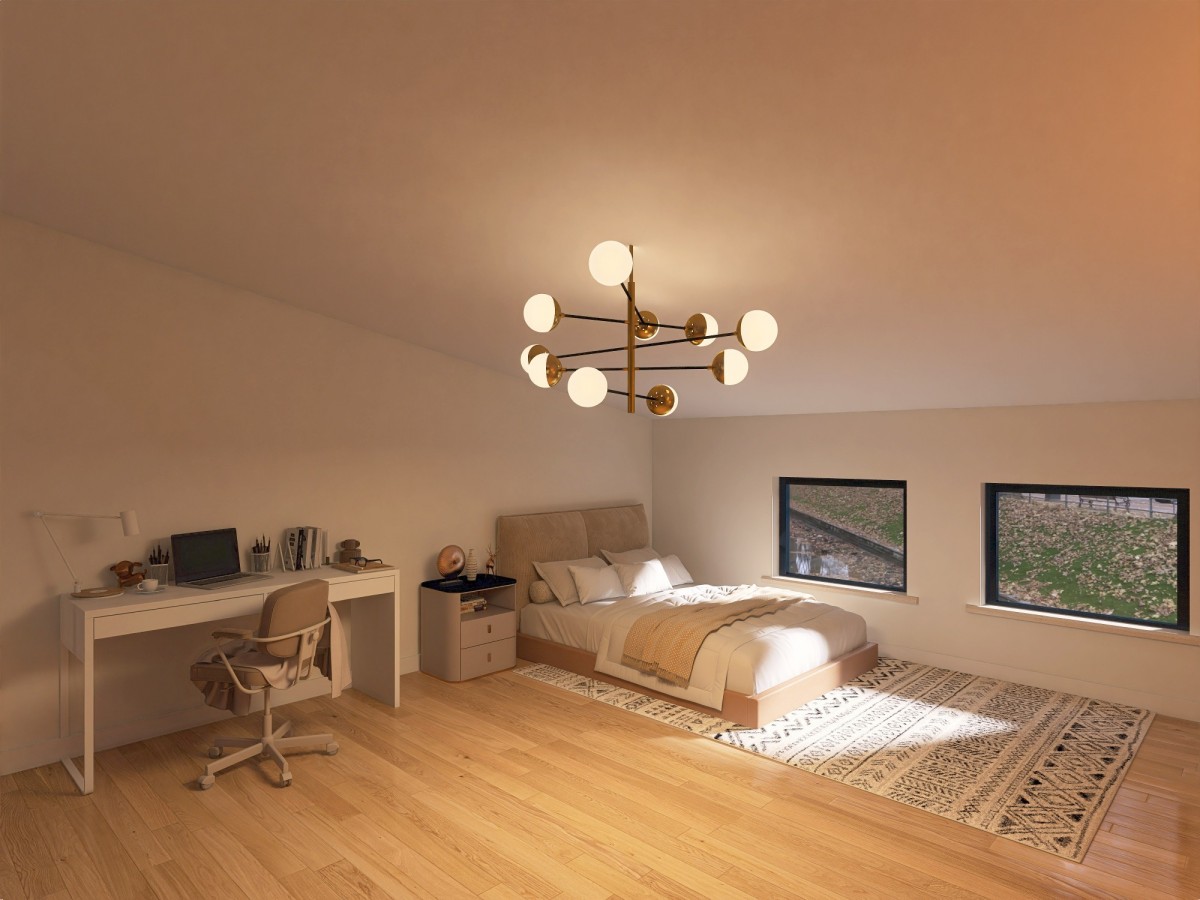 • duży strych z możliwością urządzenia drugiej sypialni z dużą garderobą lub biura,