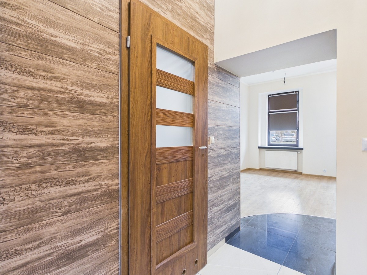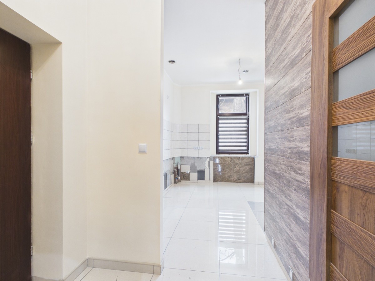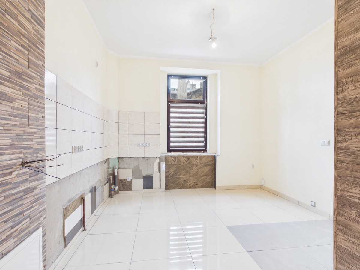 Lokal składa się z przestronnego, jasnego pokoju z działającym kominkiem, który nadaje wnętrzu niepowtarzalny klimat. Istnieje możliwość wydzielenia osobnej sypialni. Duża, widna kuchnia zapewnia komfort użytkowania.