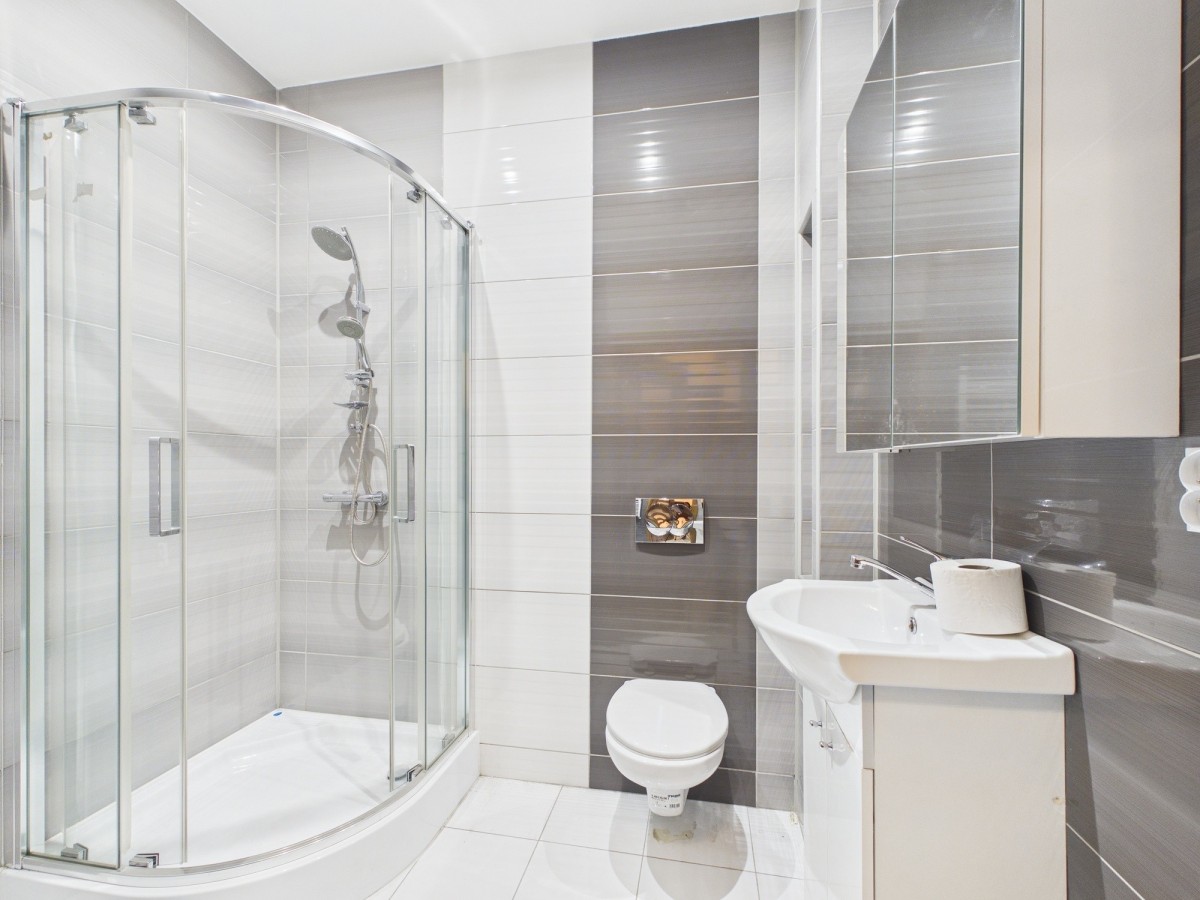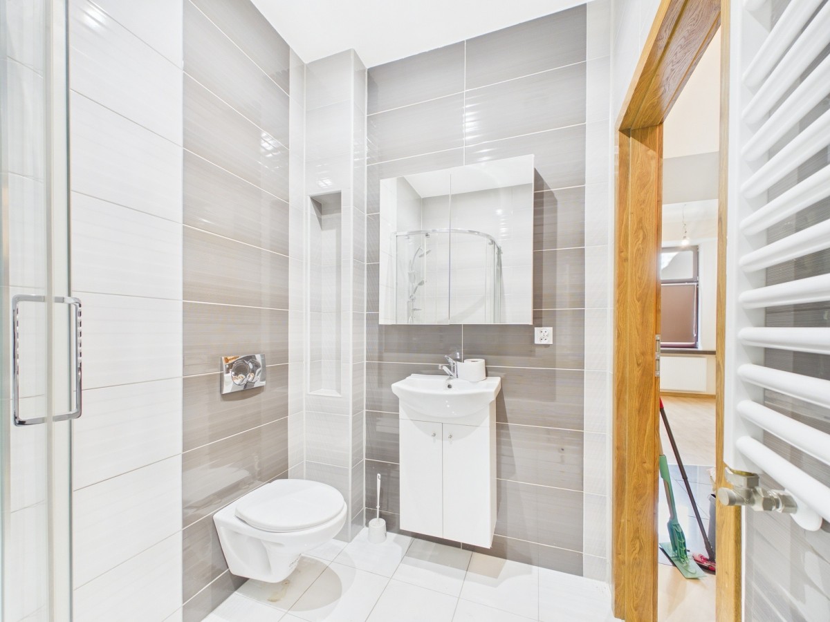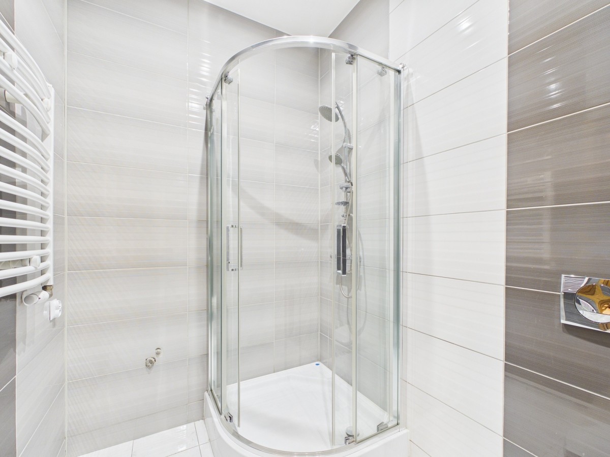 W mieszkaniu znajduje się również łazienka z WC i kabiną prysznicową oraz funkcjonalny przedpokój. Okna PCV.