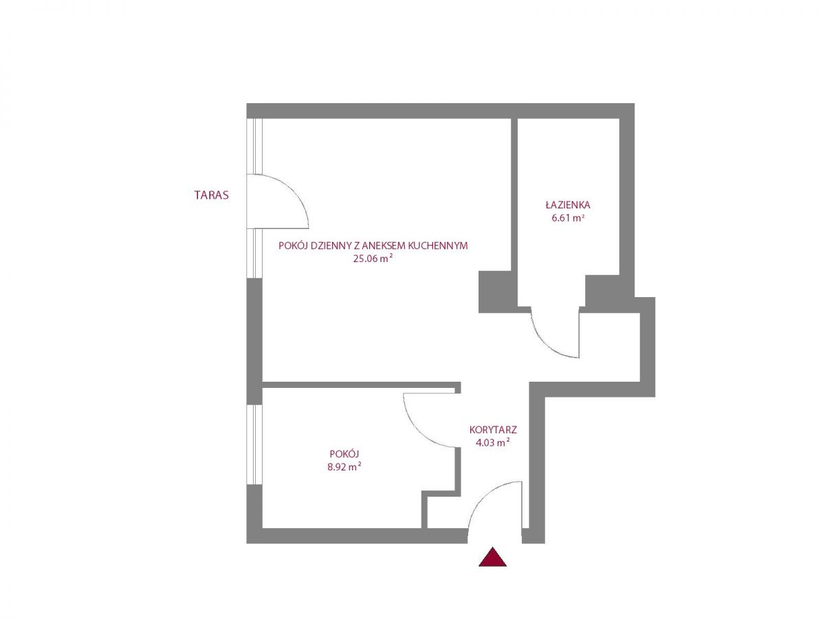 Mieszkanie na parterze, o metrażu 44,62 m2, składa się z: