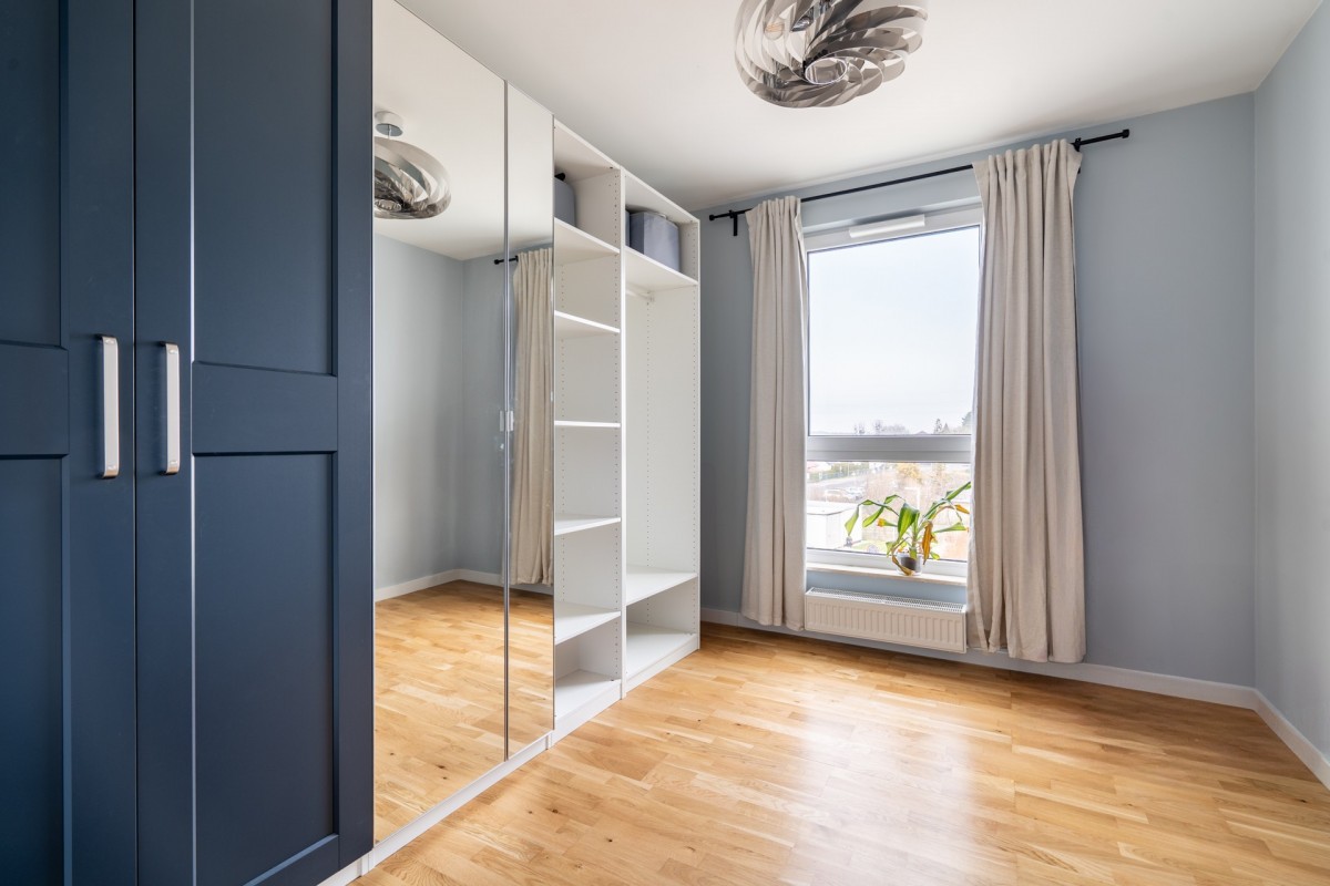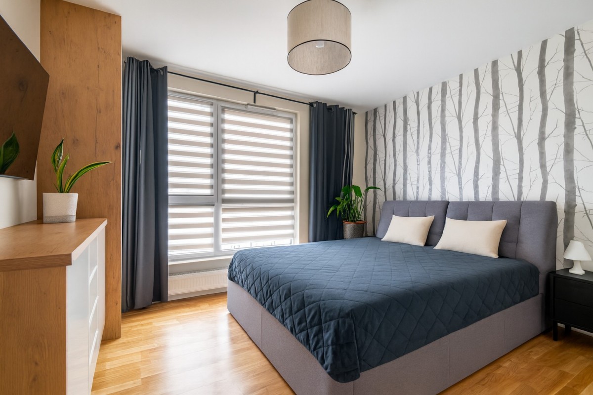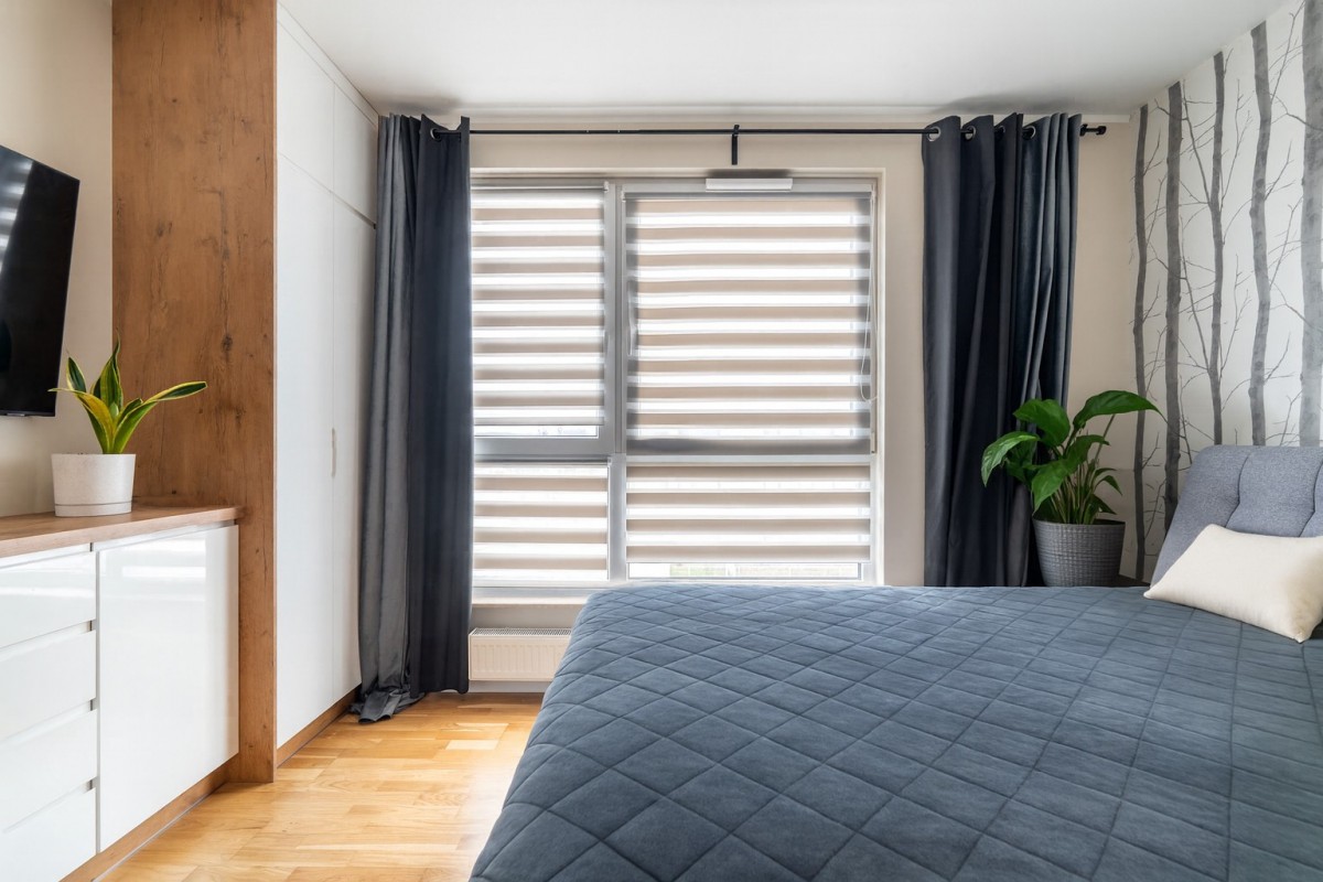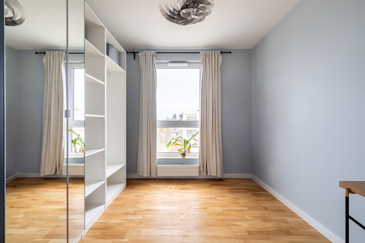 Mieszkanie wykończone jest w wysokim standardzie: w strefie dziennej i sypialniach zastosowano drewnianą deskę Barlinek, a kuchnię wykonano na wymiar - z lakierowanymi frontami, blatami laminowanymi i prowadnicami Blum. Zabudowa kuchni wyposażona jest w sprzęt AGD Whirlpool z technologią 6th Sense oraz lodówkę, zmywarkę i pralko-suszarkę LG. W salonie oraz sypialni znajdują się wykonane na wymiar zabudowy stolarskie, a w łazience zastosowano armaturę Grohe i Omnires oraz przestronną kabinę prysznicową. Mieszkanie jest spójne stylistycznie, utrzymane w jasnych barwach i naturalnych materiałach. Osiedle Start w dzielnicy Kokoszki oferuje nowoczesną zabudowę z halami garażowymi, windami i wygodnym dostępem do obwodnicy oraz lotniska.