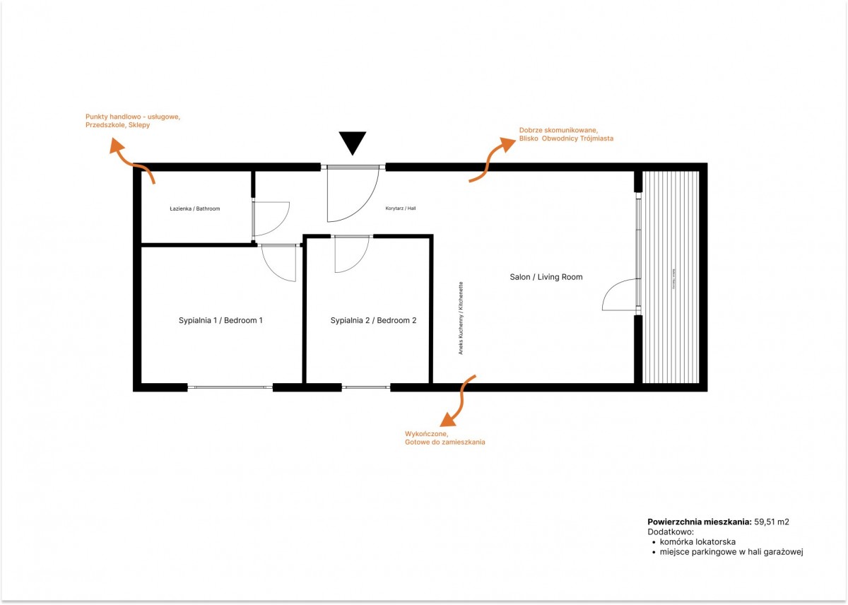 * Dobra propozycja także inwestycyjnie (wynajem dla pracowników firm z rejonu Matarni, lotniska oraz parków biznesowych na zachodzie Gdańska).