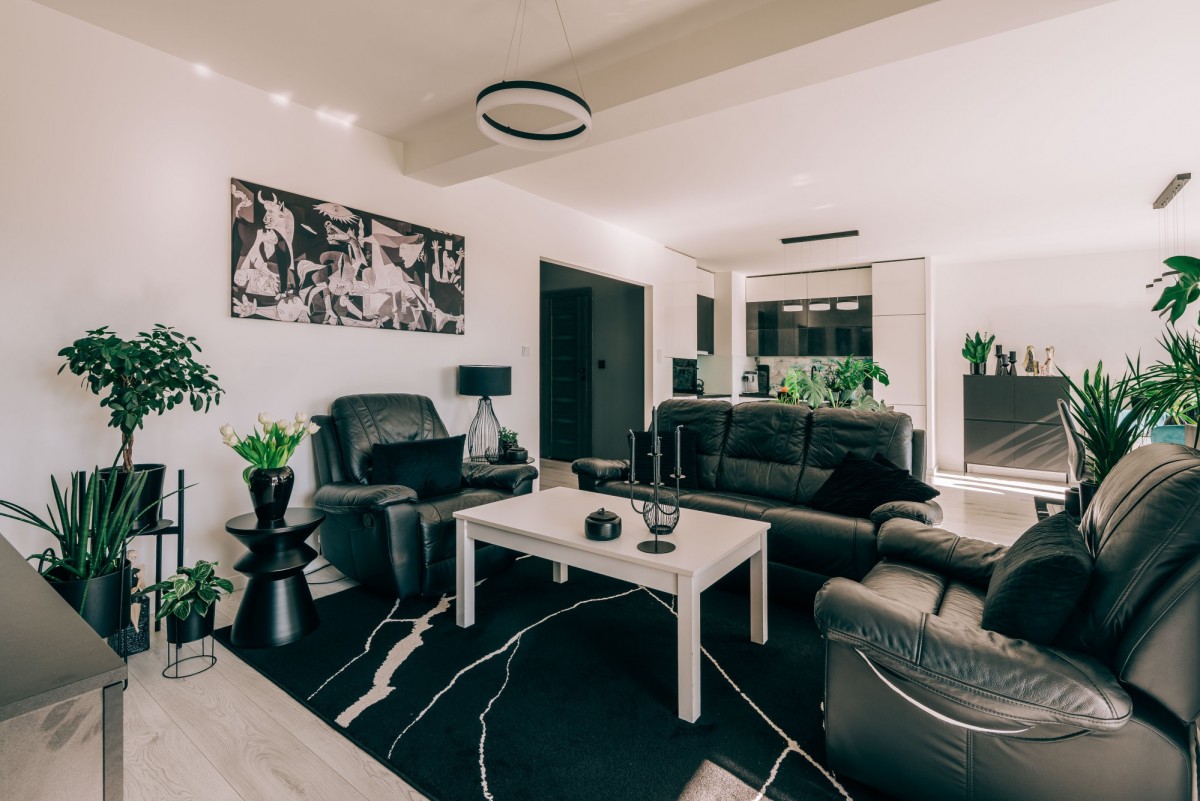 Standard wykończenia:Wnętrze zostało wykończone z wykorzystaniem wysokiej klasy materiałów, w tym paneli premium oraz zabudów stolarskich wykonywanych na zamówienie. Kuchnia wyposażona jest w nowoczesne sprzęty AGD, a okna trzyszybowe zapewniają bardzo dobrą izolację termiczną i akustyczną.