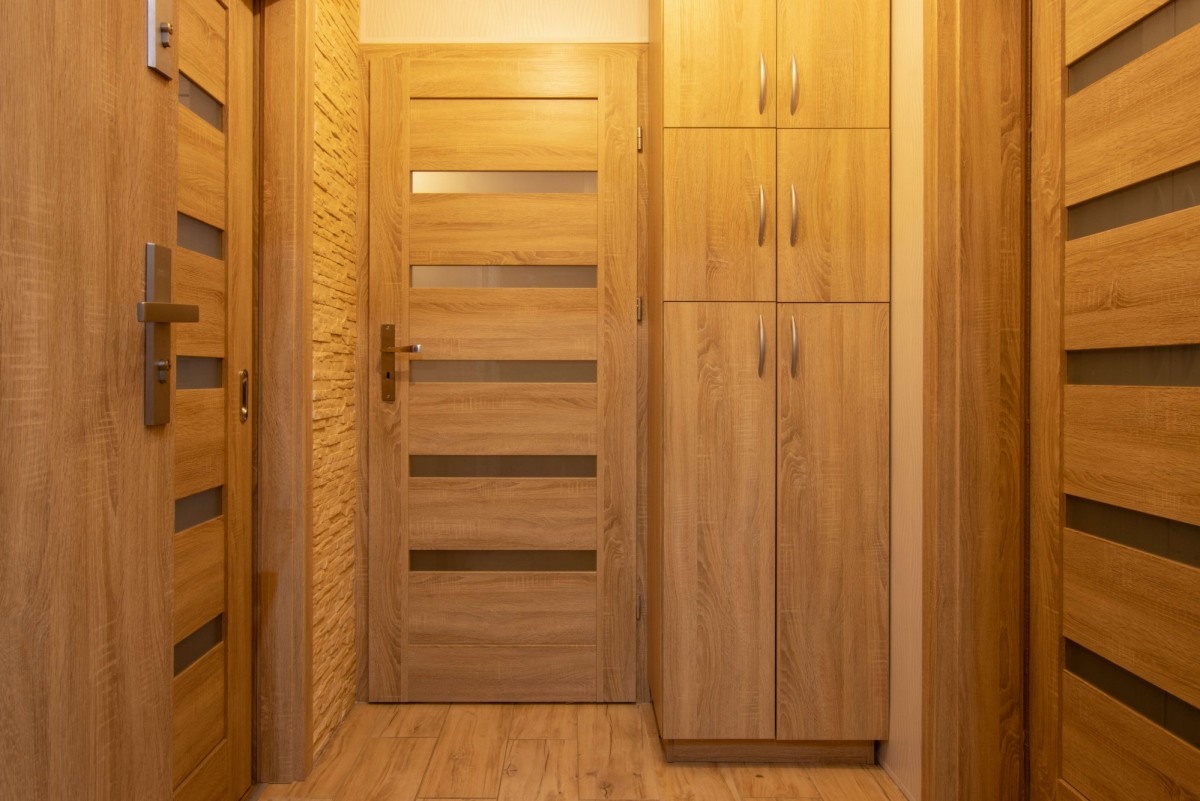 - na podłogach: panele w pokojach, w pozostałych pomieszczeniach płytki,
