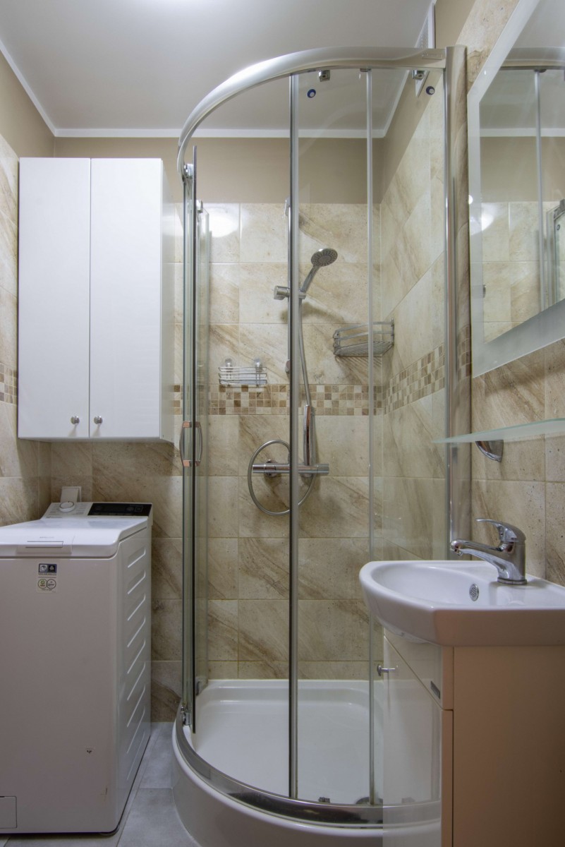 - wyposażenie kuchni: lodówka, zamrażarka, zmywarka, piekarnik elektryczny, kuchenka gazowa, okap.