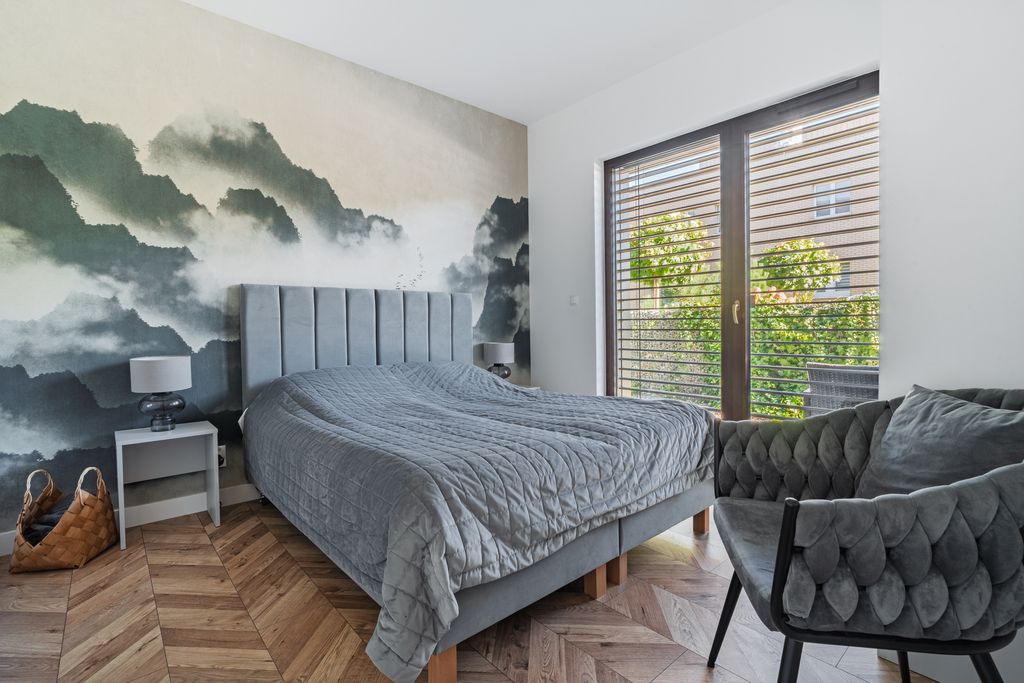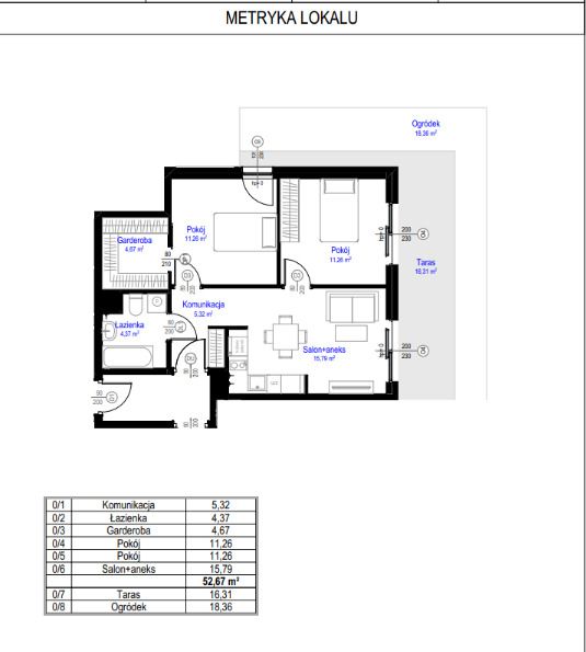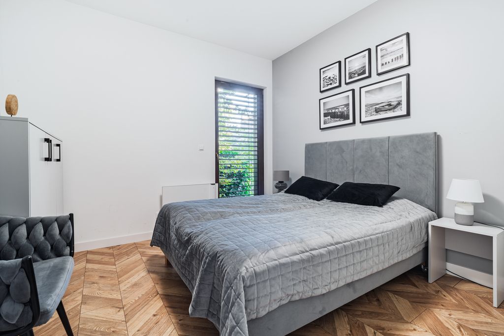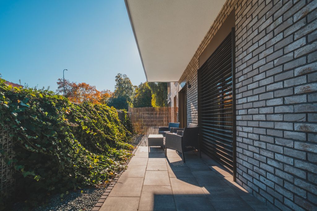 • Położony na parterze z 18 m² zagospodarowanym ogródkiem i 16,5 m² tarasem.