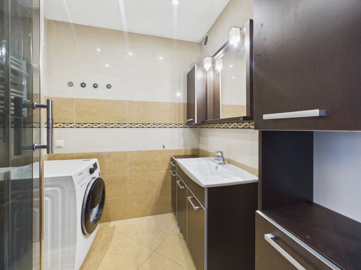 - Media: Ogrzewanie oraz ciepła woda z sieci miejskiej (brak piecyka gazowego).