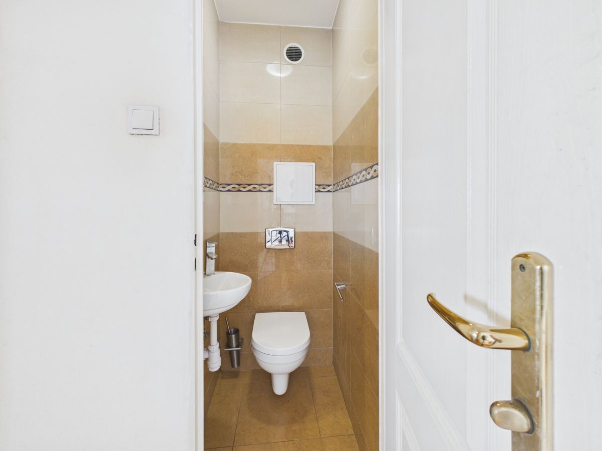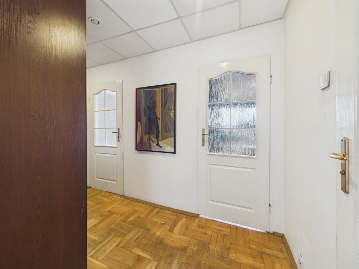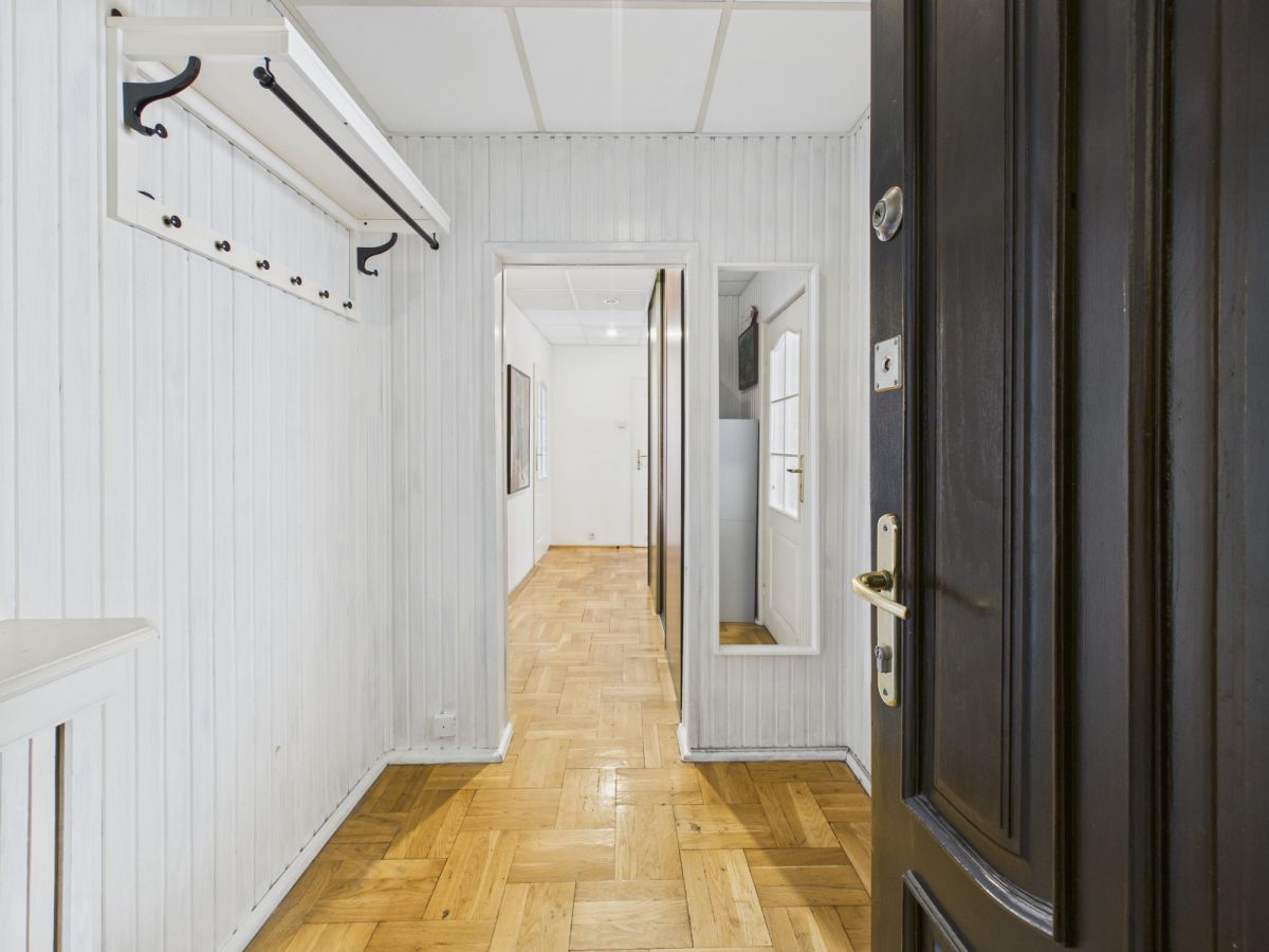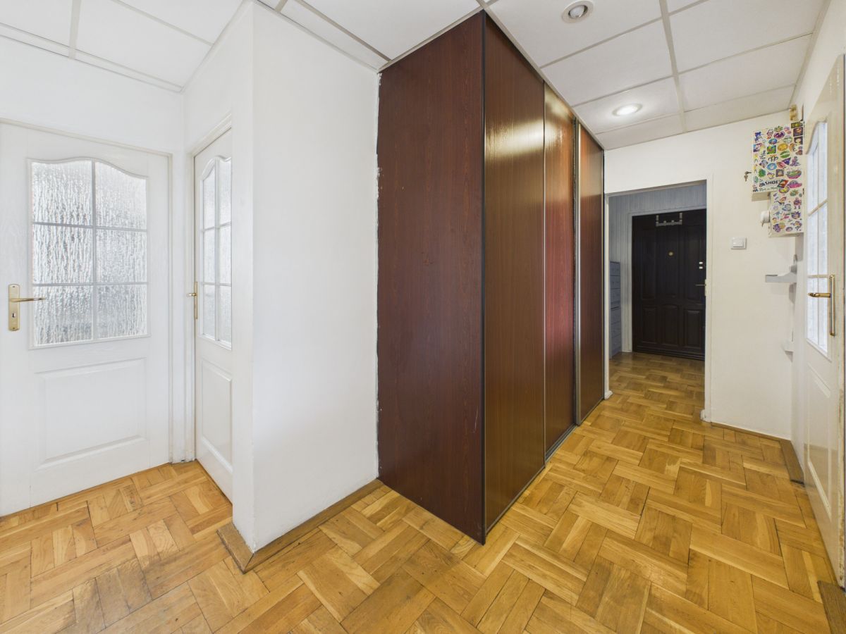 - Przedpokój: Przestronny, z szafami wnękowymi i klasycznym wykończeniem, które można łatwo zmodernizować.