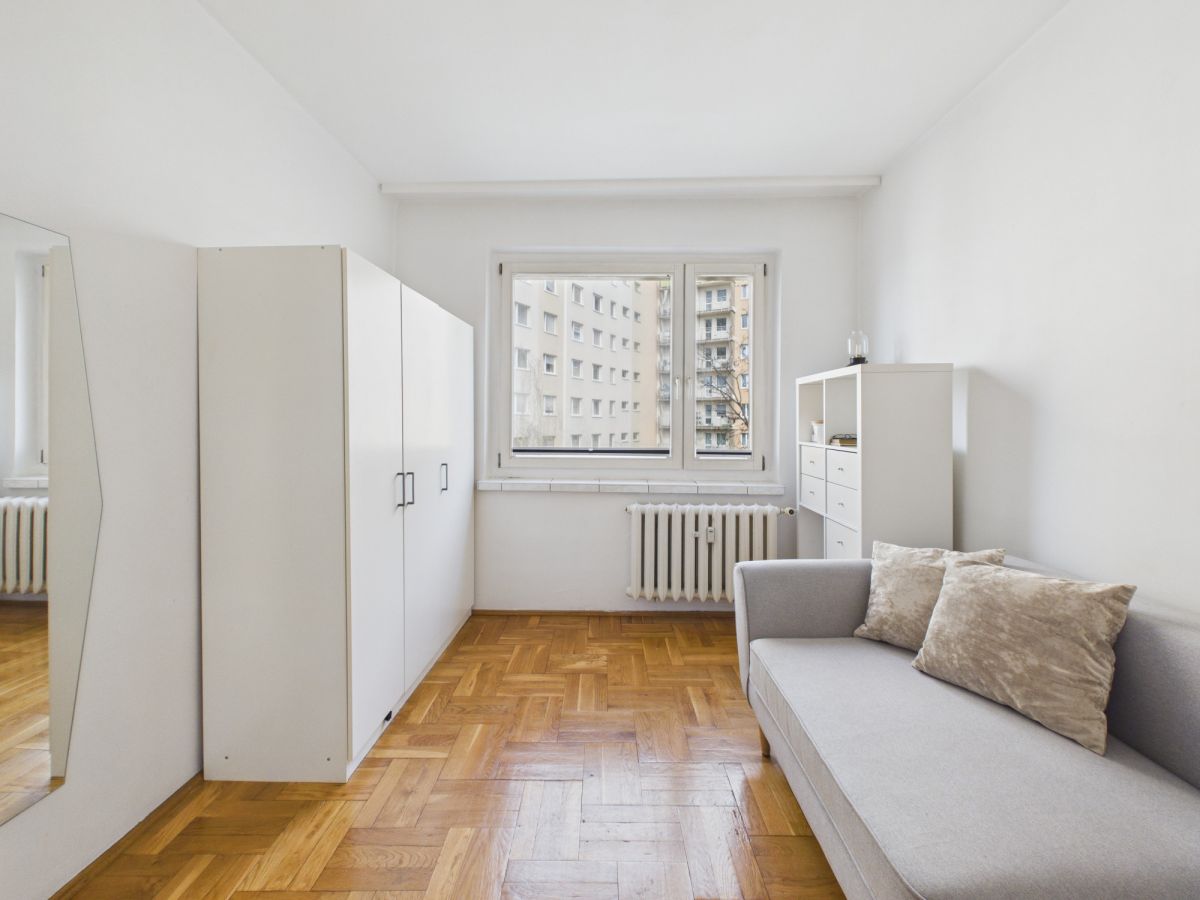 Mieszkanie jest utrzymane w standardzie do odświeżenia lub remontu, co pozwala na aranżację wnętrza według własnych potrzeb.