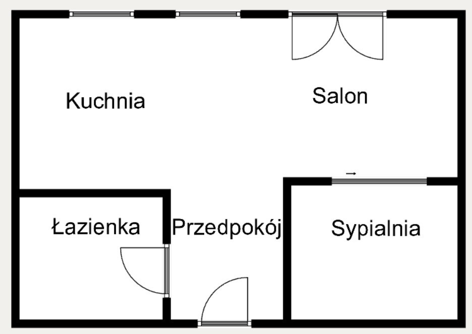 Na powierzchnię 43 m2 składają się: przestronny salon z aneksem kuchennym, sypialnia oraz łazienka.