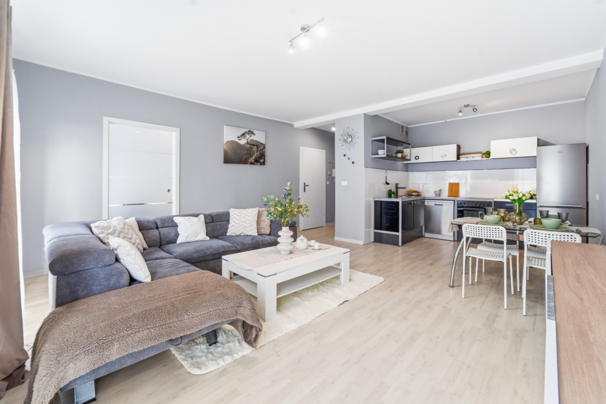 Komfortowy apartament położony na prestiżowym osiedlu Bażantowo w Katowicach. Jasne wnętrza, funkcjonalny układ oraz widok na zieleń tworzą komfortową przestrzeń do codziennego życia.