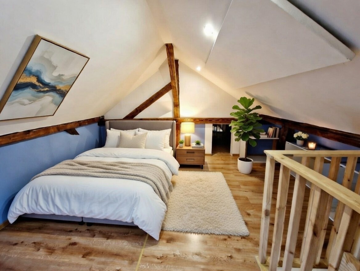 dwie przytulne sypialnie na antresoli (metraż antresoli nie jest wliczony do powierzchni użytkowej).