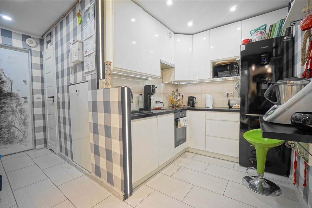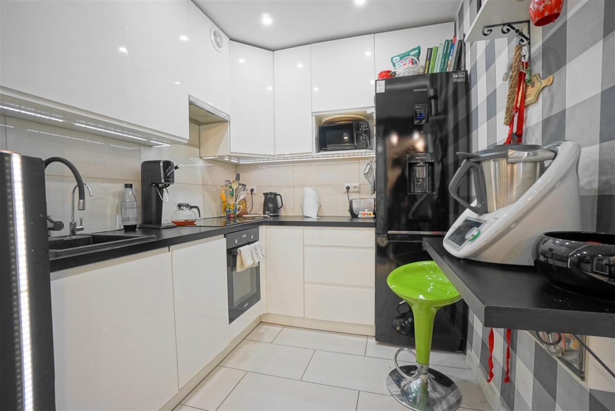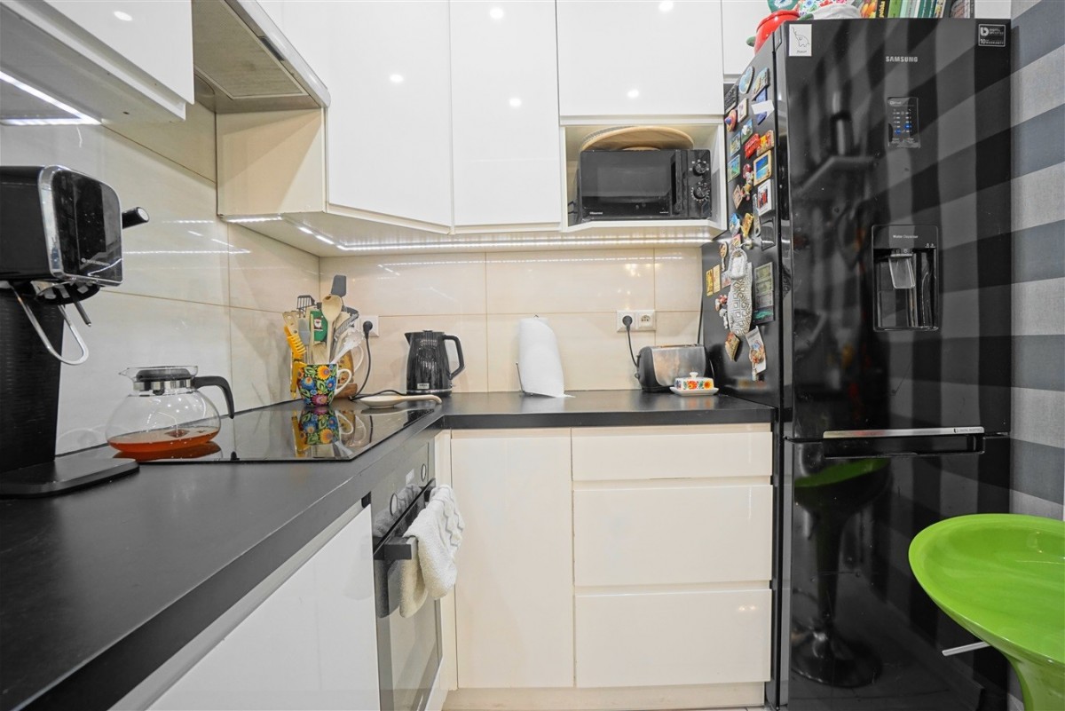 - Kuchni bez okna, otwartej na drugą część przedpokoju, wyposażonej w płytę indukcyjną, zmywarkę, piekarnik, lodówkę, oraz meble kuchenne zabudowane