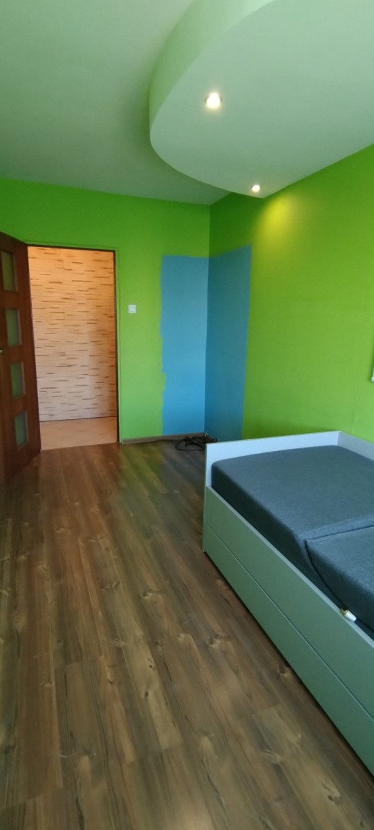 Mieszkanie składa się z 3 odrębnych, ustawnych pokoi, dużej kuchni z oknem, łazienki, osobnego WC oraz przestronnego przedpokoju. Jeden z pokoi /sypialnia/ jest umeblowany - wyposażony w pojemną, narożną szafę oraz duże łóżko małżeńskie. W przedpokoju zabudowana czterodrzwiowa szafa typu Komandor zapewniająca bardzo dużo miejsca do przechowywania. Kuchnia wyposażona w meble wykonane na wymiar (ok. 10 lat temu), w bardzo dobrym stanie.