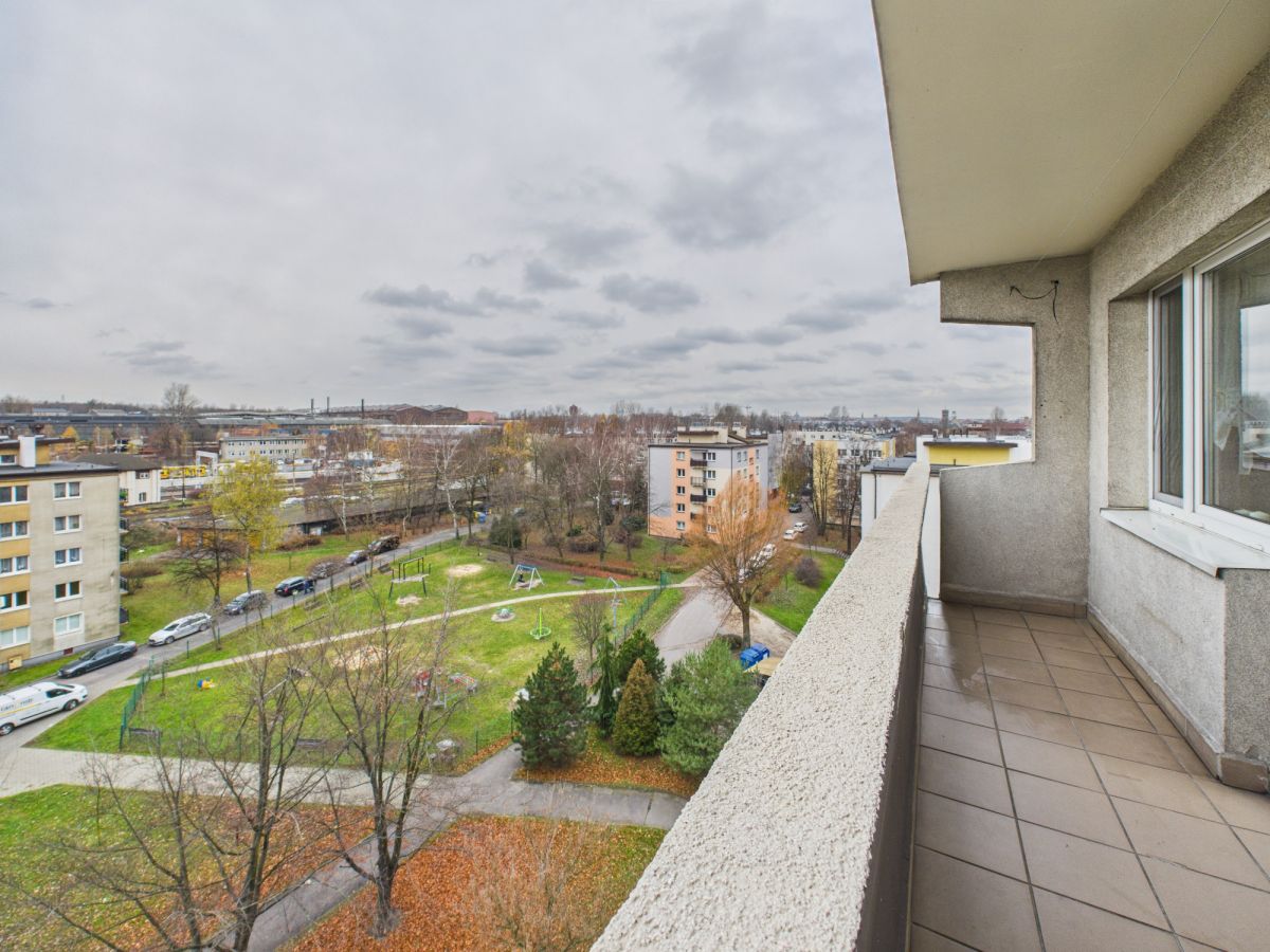 - 3 niezależne pokoje, w tym przestronny salon z wyjściem na duży balkon (6×1 m),