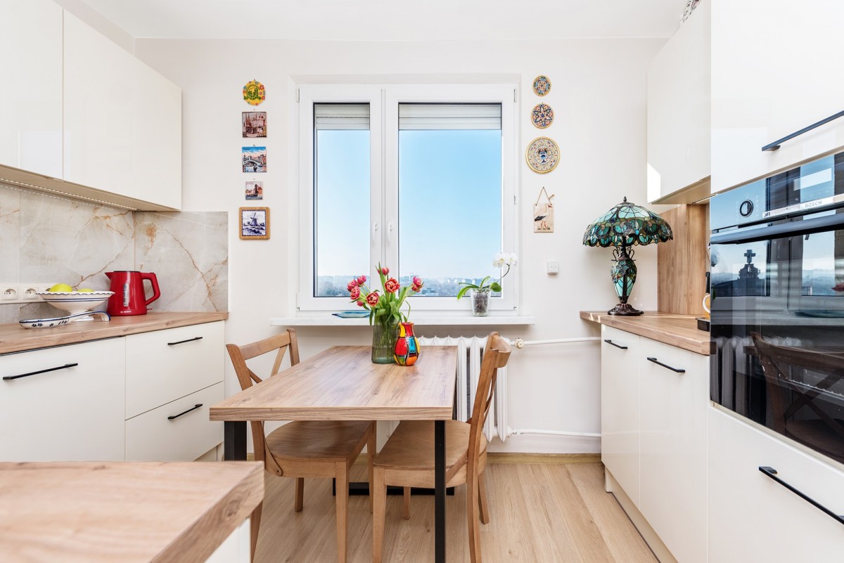 Mieszkanie znajduje się na 9 piętrze w 10-piętrowym budynku z 1981 roku i oferuje piękny, niczym nieprzysłonięty widok.