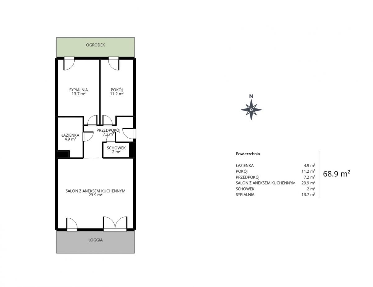 - Loggia 9 m² oraz ogród 9 m² - idealne miejsce na poranną kawę i relaks z widokiem na zieleń.