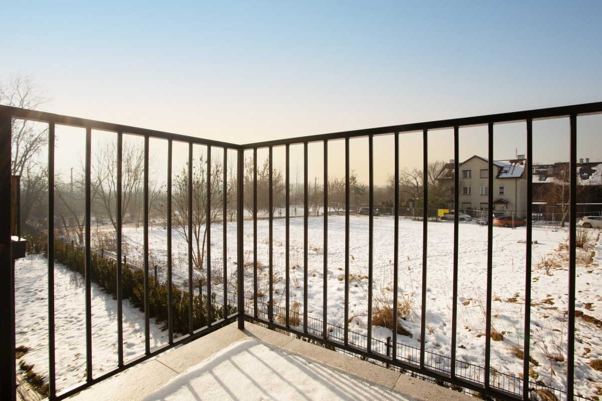 * balkon z widokiem na zieleń.