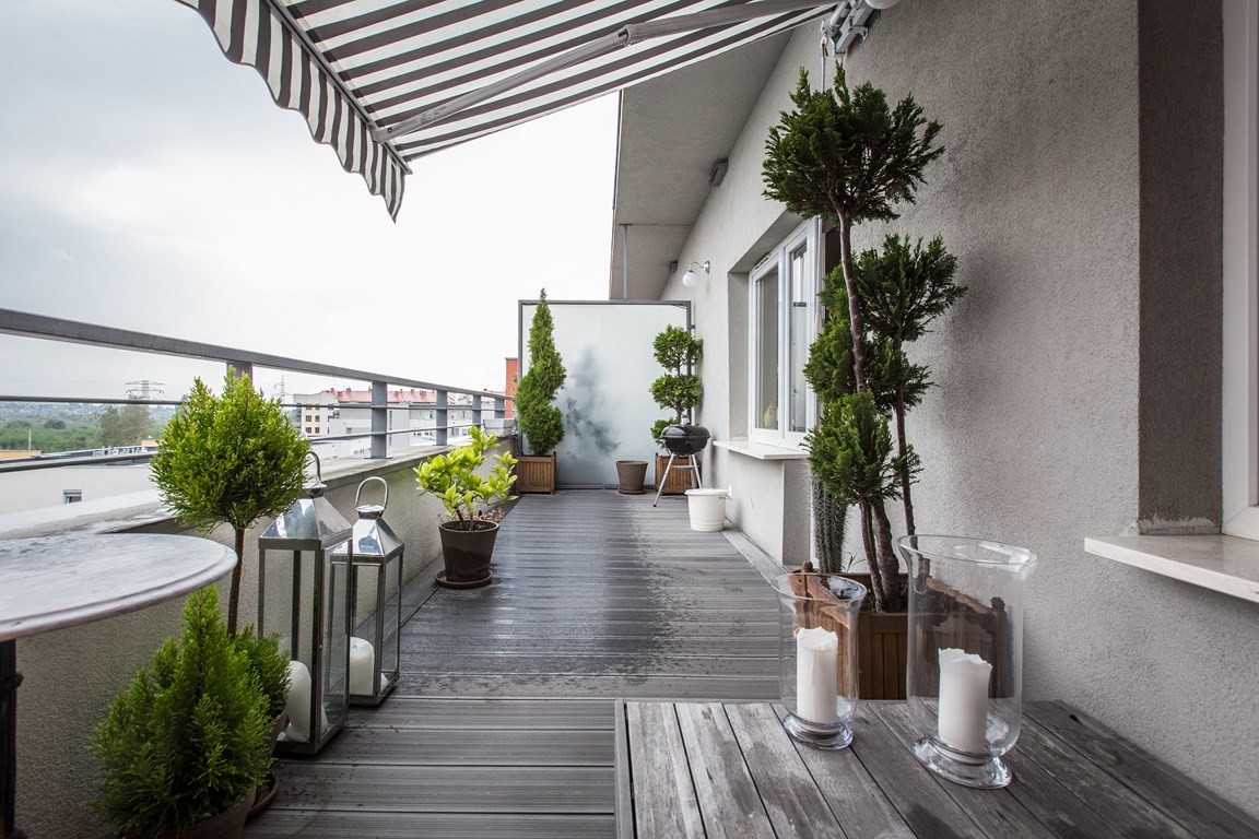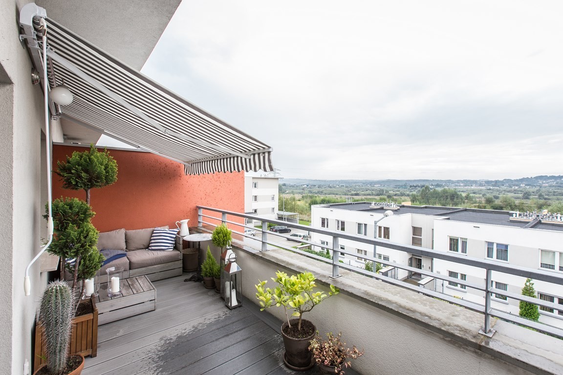 Dużym atutem mieszkania jest taras - doskonale nasłoneczniony przez cały dzień (ekspozycja południowa), z markizą, oświetleniem i doprowadzonym prądem - idealne miejsce do wypoczynku.