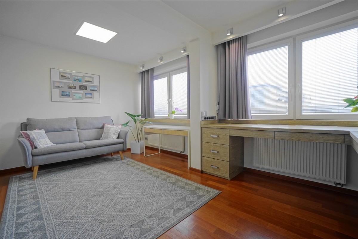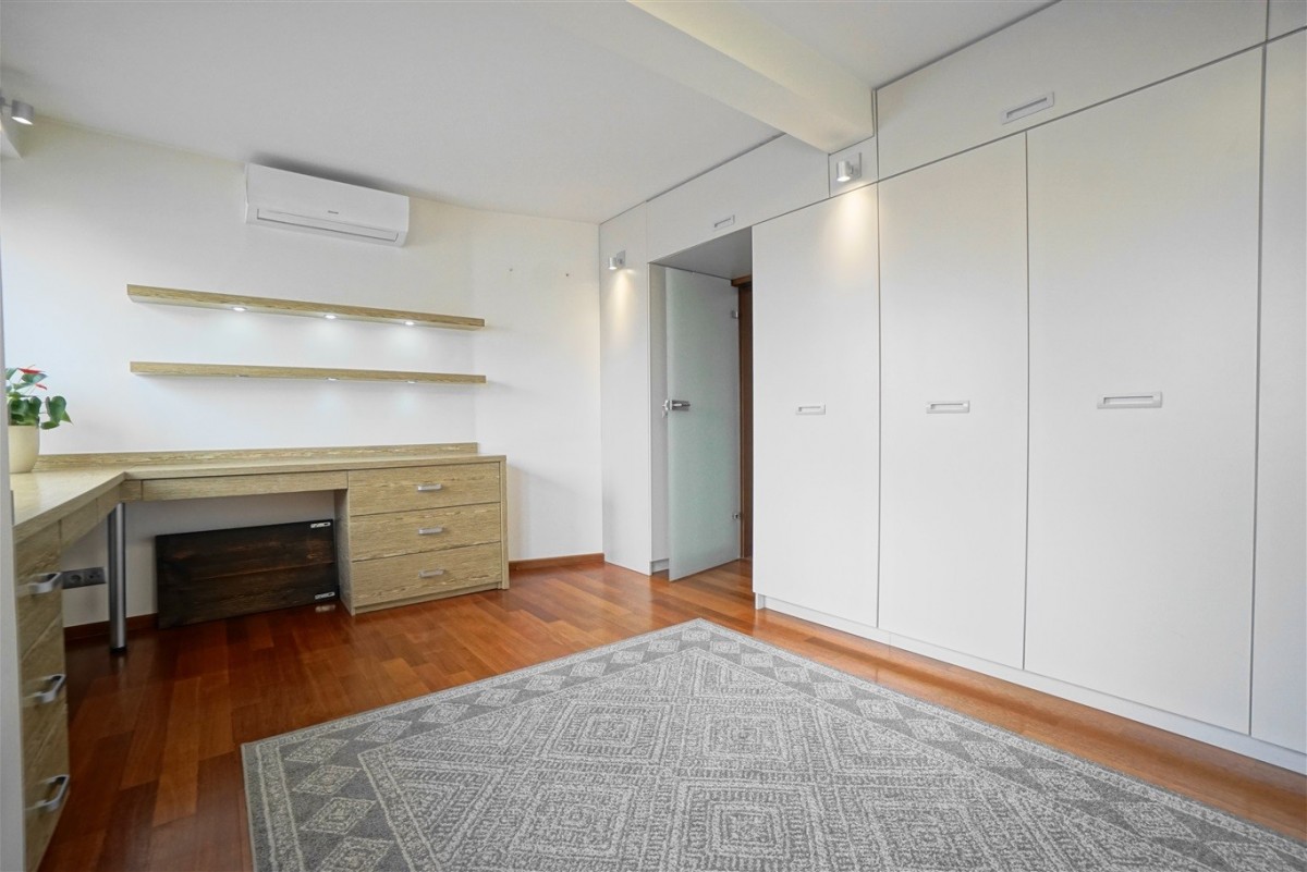 - Pokoju - idealny jako duży gabinet lub dodatkowa sypialnia, pokój dziecka. Wyposażony w szafą zabudowaną + klimatyzacja