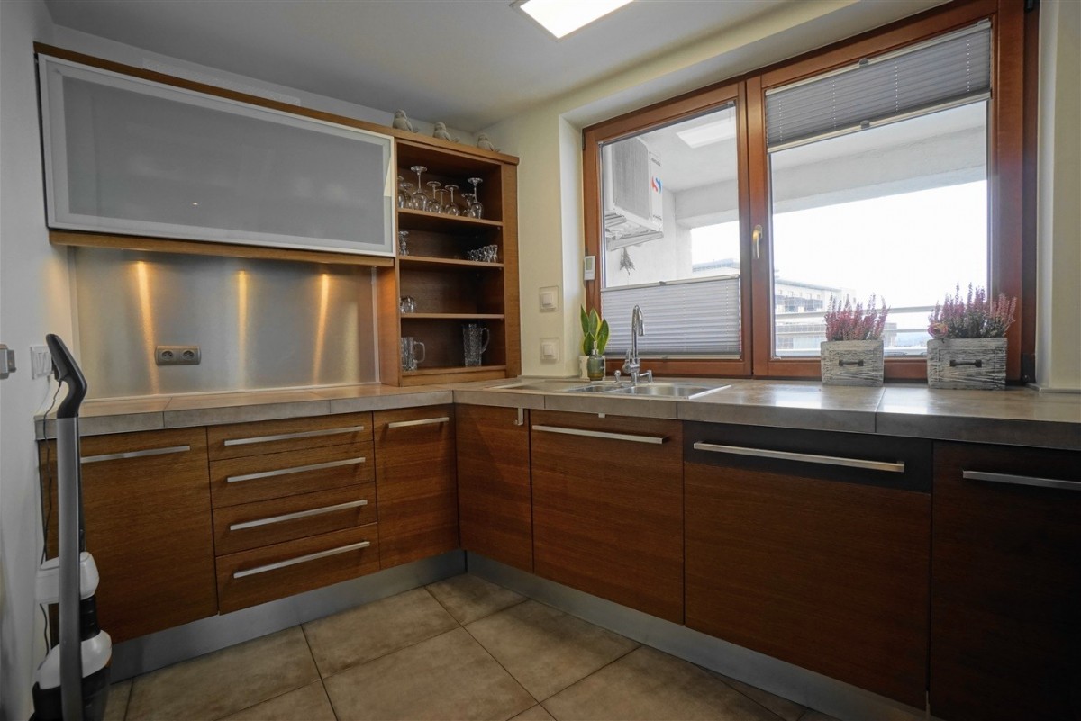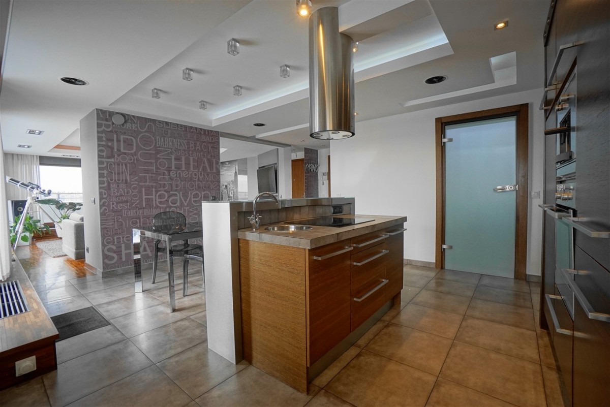 - Kuchni z wyspą w pełni wyposażonej(lodówka, zmywarka, płyta indukcyjna, ekspres do kawy, okap)
